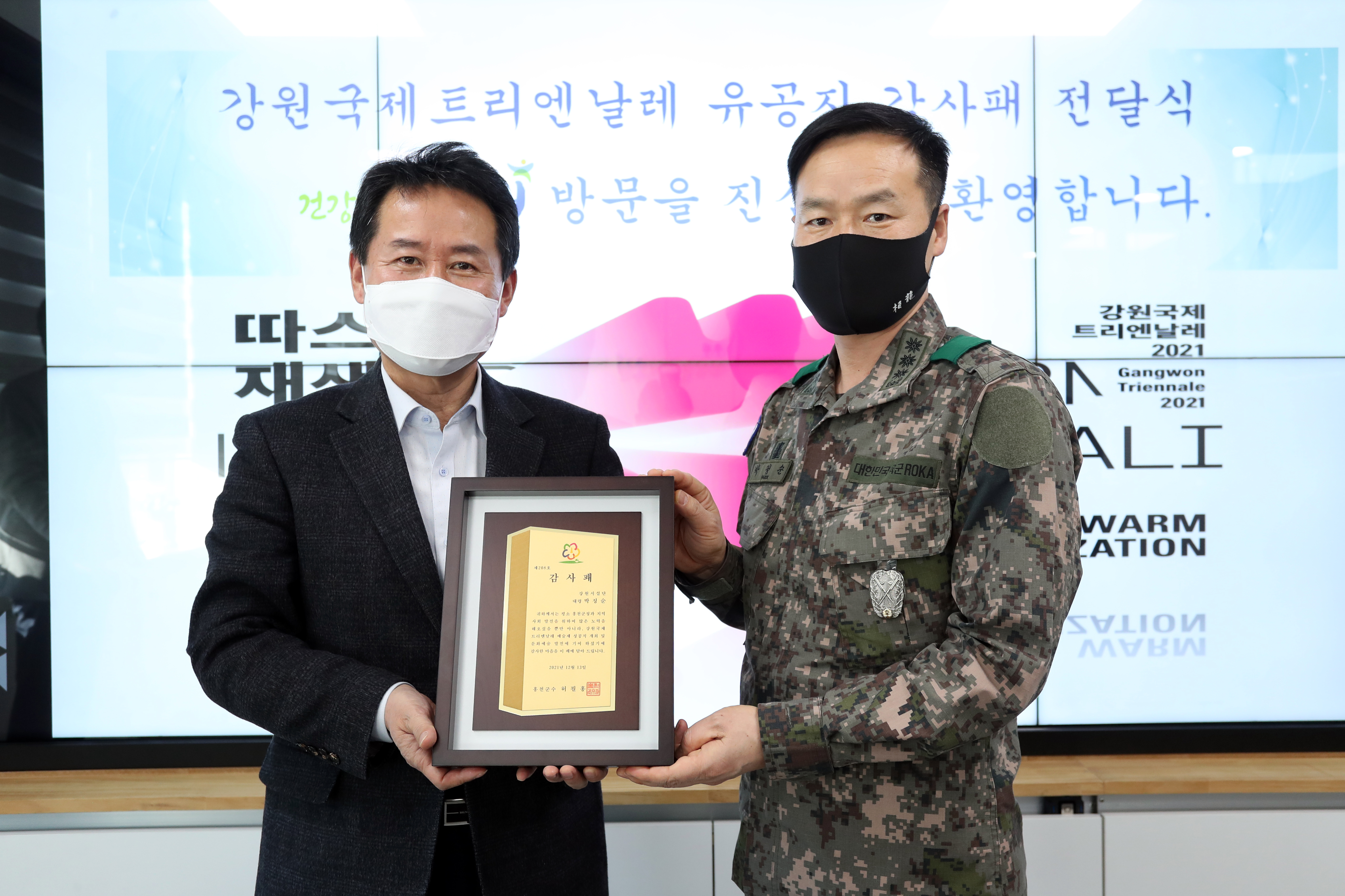 [강원사회복지신문 홍기한 기자]=홍천군은 지난 12월 13일 박정순 강원시설단장 등 6명에게 강원국제트리엔날레 유공자에게 감사패 및 표창장을 수여했다.
