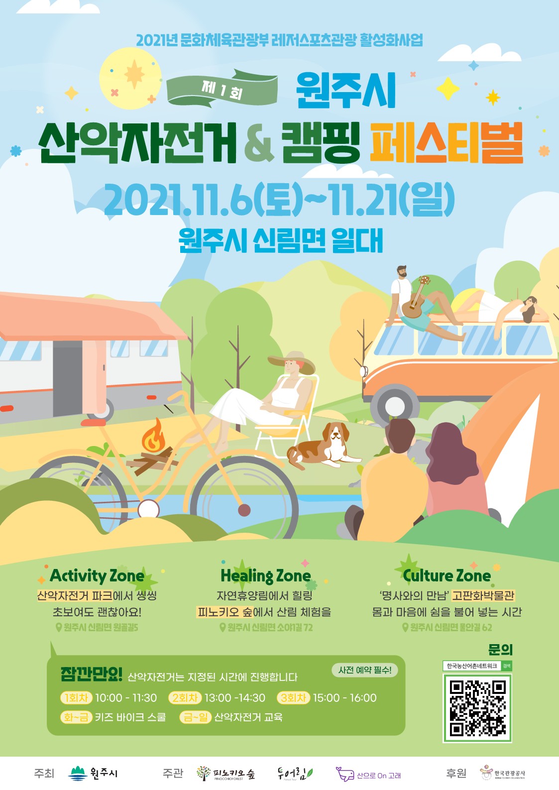 [강원사회복지신문 서은진 기자]=11월 6일부터 11월 21일까지 신림면 일대에서 열려 일반시민과 산악자전거 동호인이 함께 즐기는 다채로운 프로그램 운영 '2021 원주시 산악자전거&캠핑페스티벌'이 지난 11월 6일부터 오는 11월 21일까지 원주산악자전거파크를 중심으로 신림면 일대에서 열린다. 이번 행사는 2021년 문...