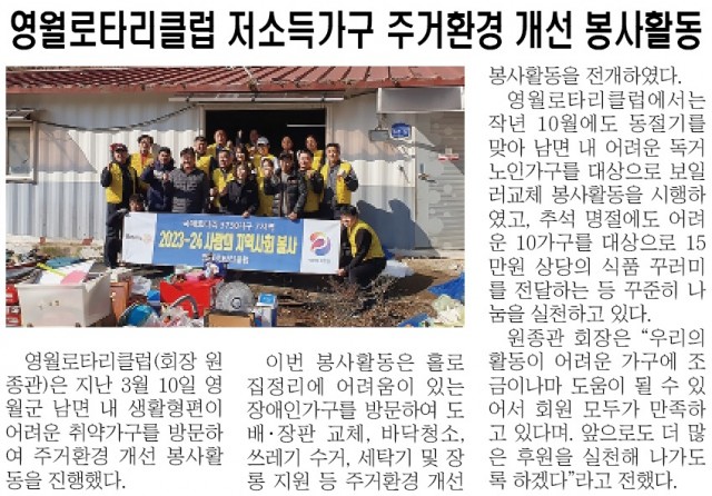 로타리클럽 소식-영월로타리클럽 저소득가구 주거환경 개선 봉사활동