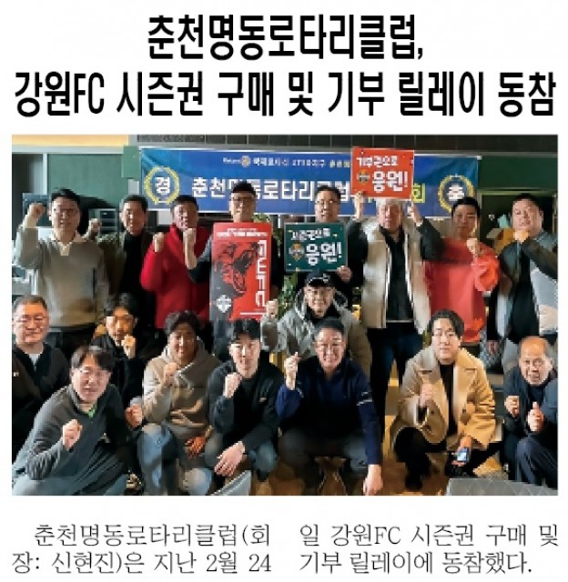로타리클럽 소식-춘천명동로타리클럽, 강원FC 시즌권 구매 및 기부 릴레이 동참