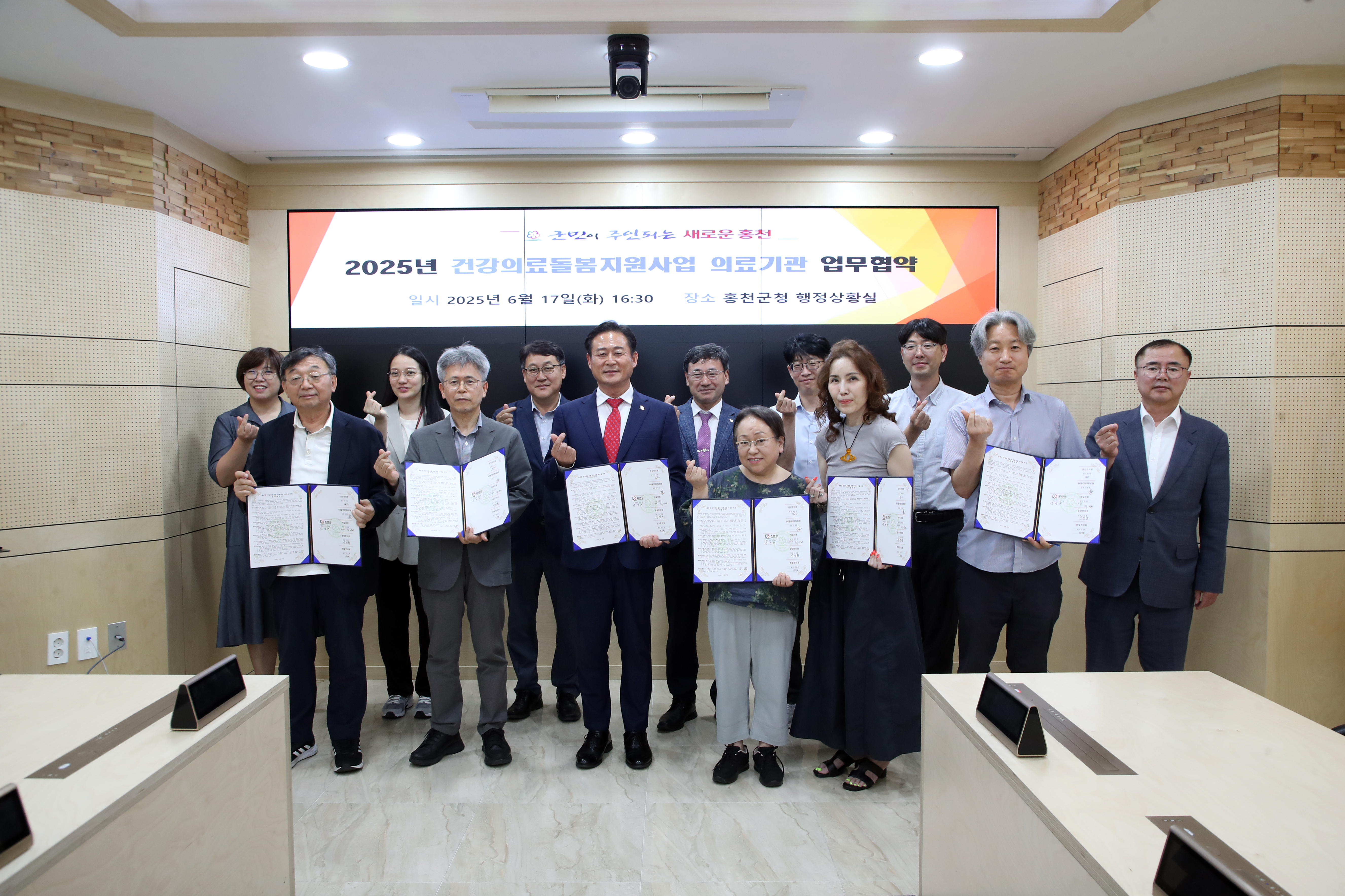 홍천군은 6월 17일(화) 오후 4시 30분, 홍천군청 행정상황실에서 6개 일차 의료기관과 건강의료돌봄 지원사업 업무협약을 체결했다. 이번 협약은 보건복지부의 일차 의료기관 방문 진료수가 시범사업에 참여하는 의료기관들과 연계하여, 의료기관 방문이 어려운 거동불편 어르신을 대상으로 한 방문진료 서비스를 제공하기 위...