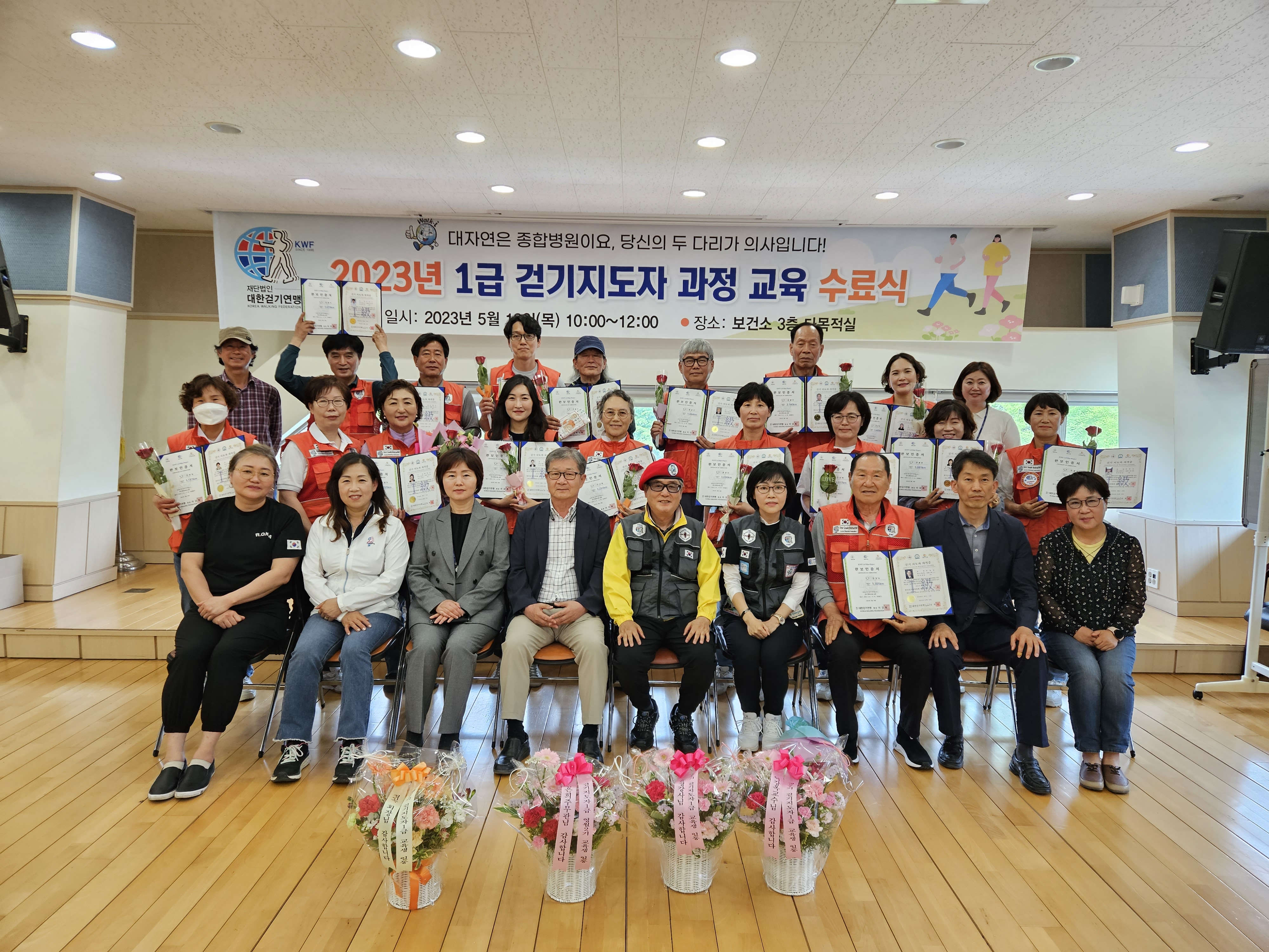[강원사회복지신문 홍기한 기자]=영월군보건소(소장 호희남)는 지난 5월 18일(목) 오전 11시 보건소 3층 강당에서 1급 걷기 지도자 양성 교육과정을 이수한 20명의 걷기지도자에 대한 수료식을 진행했다. 지역 내 걷기 실천 분위기 환경조성을 위한 인프라 구축 일환으로 지난 2월 6일부터 약 3개월간 영월군민을 대상으로 1...