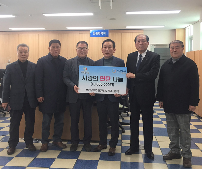 [강원사회복지신문 김도연 기자]=강원남부주민(주)(대표 송재범)와 도계주민(주)(대표 신상균)는 지난 12월 20일 오전 11시 삼척시 도계읍 행정복지센터를 방문하여 이웃돕기 성금 1천만 원을 기탁했다. 강원남부주민(주) 송재범 대표는 코로나19와 동절기 한파로 어려움을 겪고 있는 도계읍 저소득 주민들에게 따뜻함이 전달...