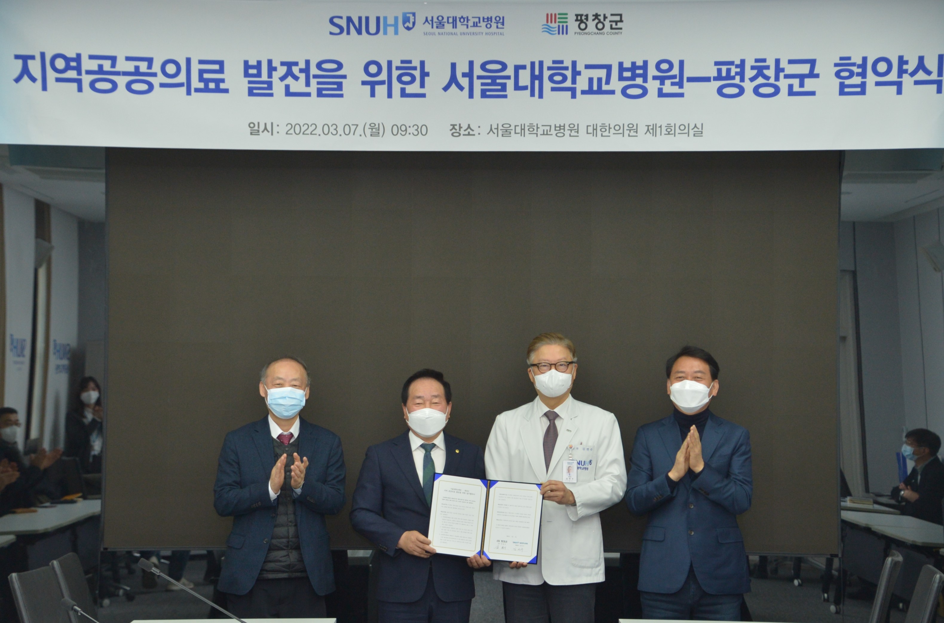 [강원사회복지신문 이정환 기자]=평창군과 서울대학교병원은 지난 3월 7일 서울대병원에서 '지역 공공의료 발전을 위한 협약식'을 갖고 평창 군민을 위한 역내 의료센터 설립 등 상호협력을 위한 양해각서(MOU)를 체결했다. 이날 협약식은 한왕기 평창군수, 김연수 서울대학교병원장, 이광재 국회의원 등이 참석했으며, 향후...