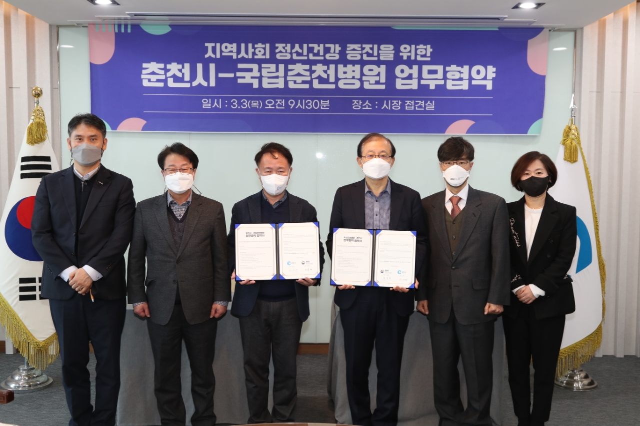 [강원사회복지신문 서은진 기자]=춘천시정부, 지난 3월 3일 국립춘천병원과 정신건강 취약계층 및 대응 인력 건강 위한 협약 체결 정신건강 취약계층 의료서비스 지원 및 통합사례관리 대상자 의학 자문 등 춘천시정부가 정신건강 취약계층과 대응 인력의 건강한 삶을 위해 국립춘천병원과 지난 3월 3일 손을 잡는다. 이번 상...
