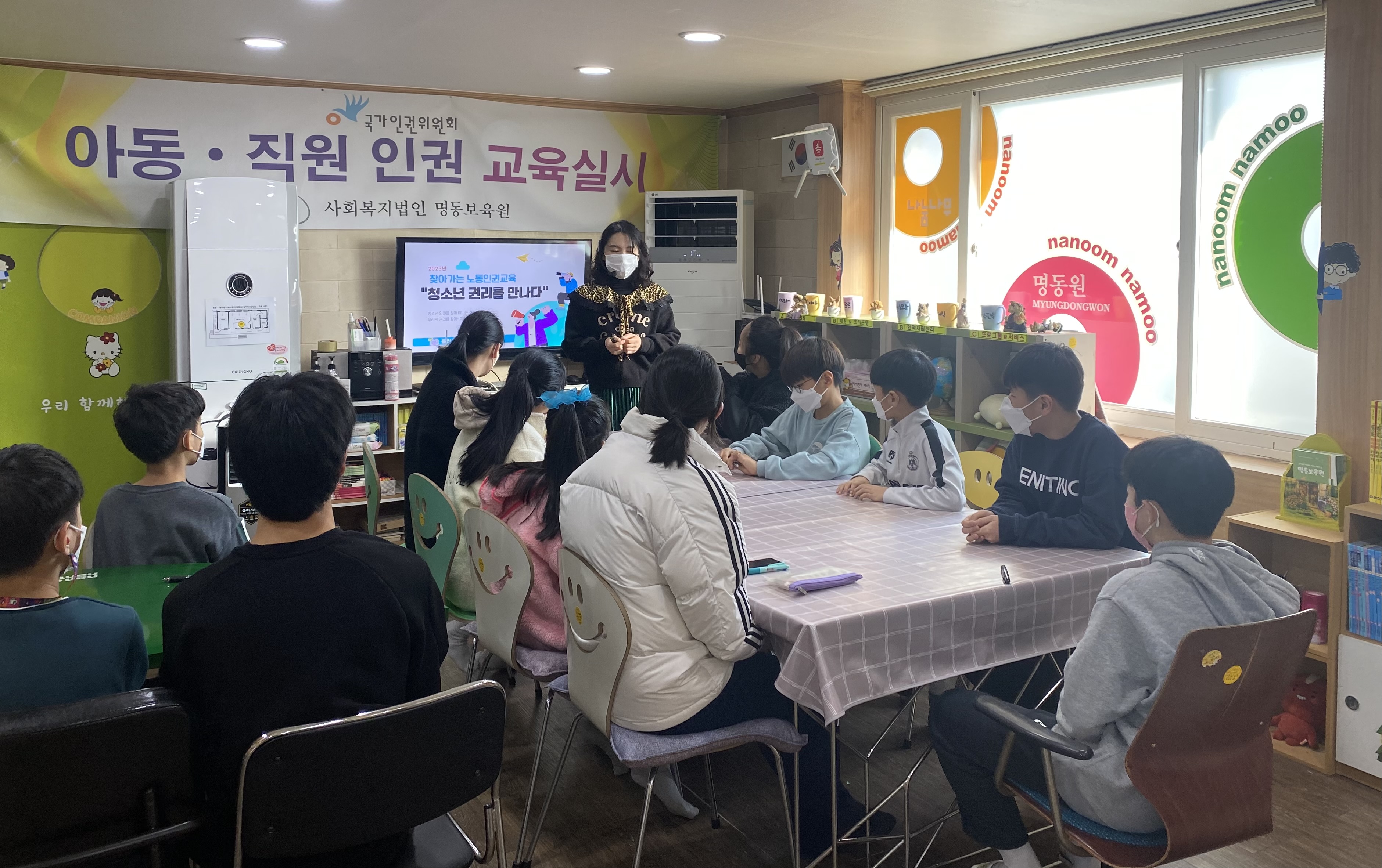 [강원사회복지신문 홍기한 기자]=홍천군청소년상담복지센터(센터장: 허일)는 지난 2월 25일 명동보육원에서 명동보육원 아동 14명을 대상으로 청소년권리교육인 찾아가는 인권교육 '청소년, 권리를 만나다'를 진행했다. 이번 교육은 인권의 의미와 자신과 타인의 인권을 지키기 위해 어떤 노력과 행동을 할 수 있는지 생각하...
