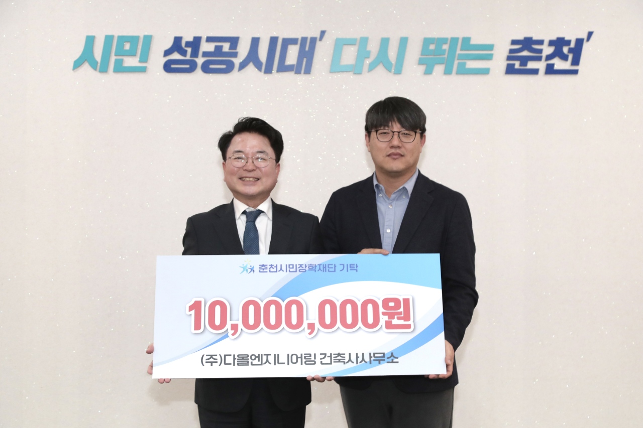 (주)다올엔지니어링 건축사사무소는 지난 12월 30일 춘천시청 접견실에서 장학금 1,000만 원을 (재)춘천시민장학재단에 기탁했다.