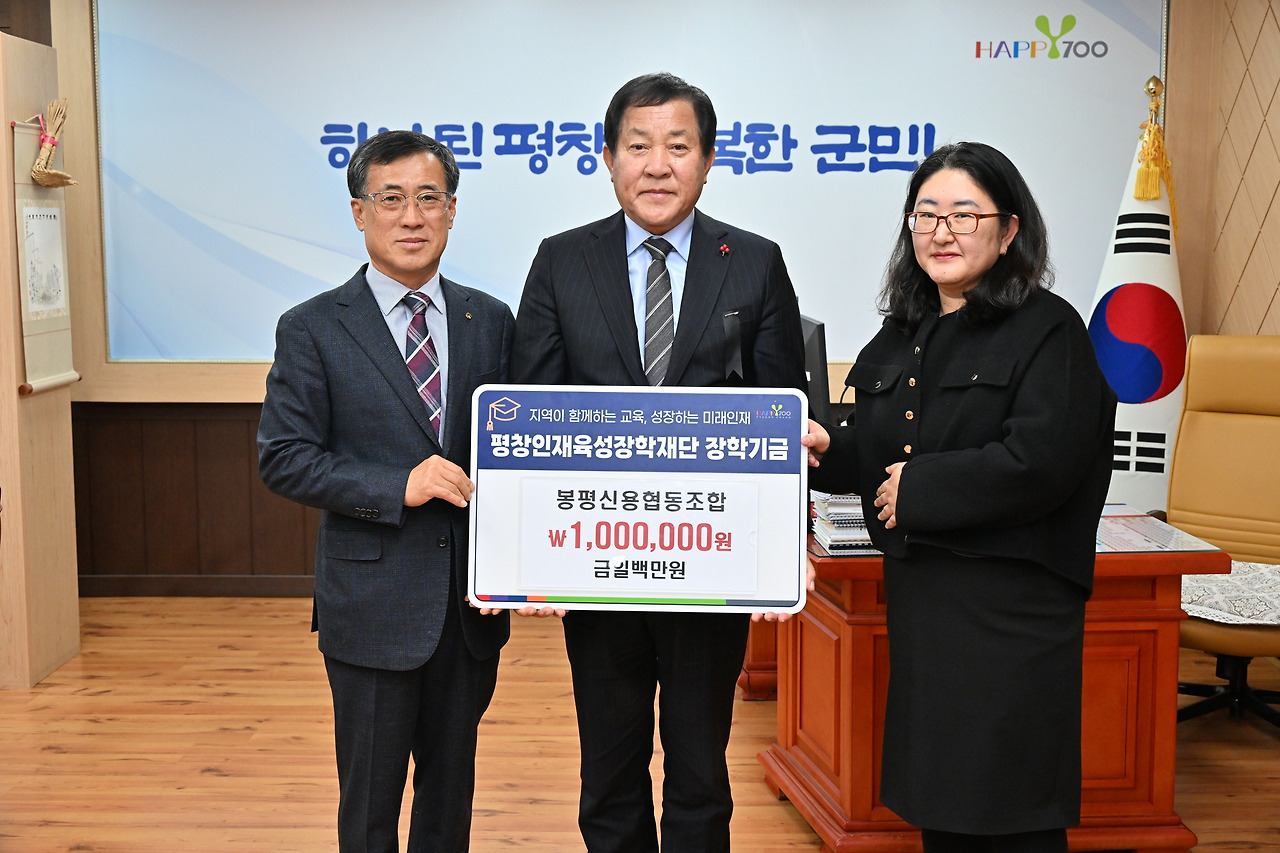 봉평 신용협동조합(이사장 김범구)은 지난달 12월 30일 평창인재육성장학재단에 장학금 100만 원을 전달했다. 봉평 신용협동조합은 사회공헌활동으로 2014년부터 평창인재육성장학재단에 장학금을 전달 해오며 현재 누적 기부 장학금이 1,400만 원에 달한다. 장학금 기탁식에 참석한 김범구 이사장은 “지역 인재 육성에 보탬...