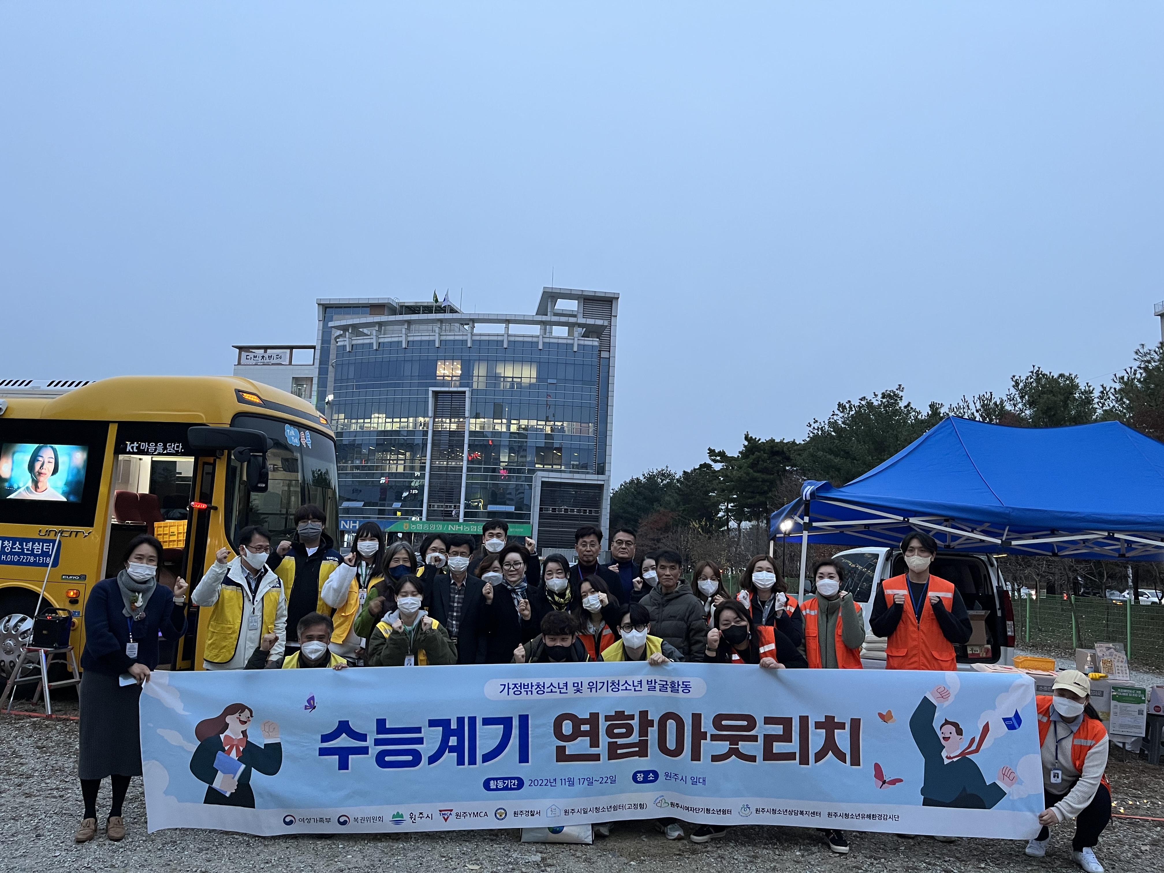 [강원사회복지신문 이정환 기자]=수능 이후 청소년들의 일탈을 막기 위한 조치 원주시는 지난 11월 22일 원주경찰서를 비롯해 청소년유해환경감시단 2개소, 청소년 쉼터 2개소, 청소년 상담복지센터 7개 기관·단체 20여 명이 참여한 가운데 청소년 쉼터 연합 아웃리치 및 청소년 유해환경 점검·단속 활동을 펼쳤다. 대학 수...