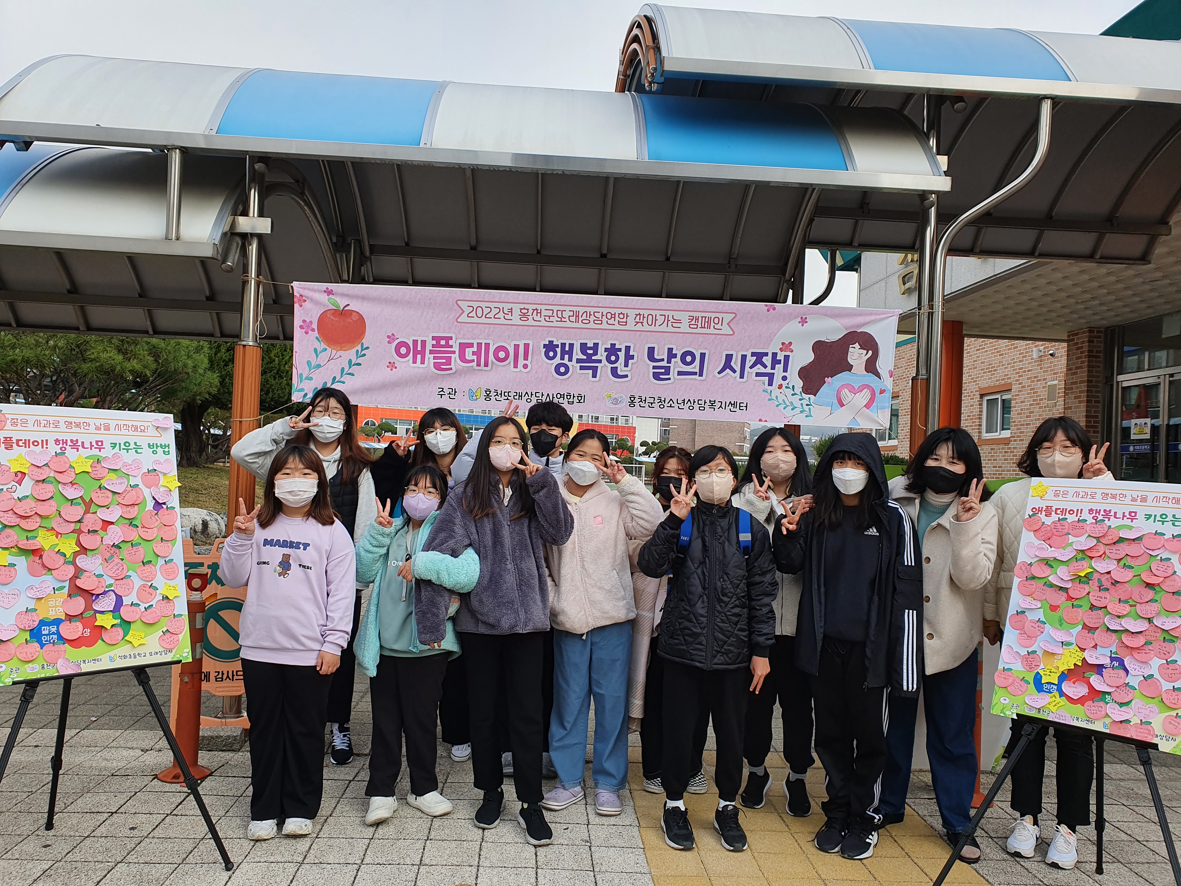 [강원사회복지신문 서은진 기자]=홍천군청소년상담복지센터(센터장:허일)는 지난 10월 26일(수)~11월 24일(목)까지 홍천군또래상담사와 함께 등굣길 또는 점심시간을 활용하여 학교폭력예방을 위한 '애플데이, 행복한 날의 시작' 캠페인을 진행했다. 캠페인에는 또래상담 동아리를 운영하고 있는 석화초등학교(10월 26일, 30...