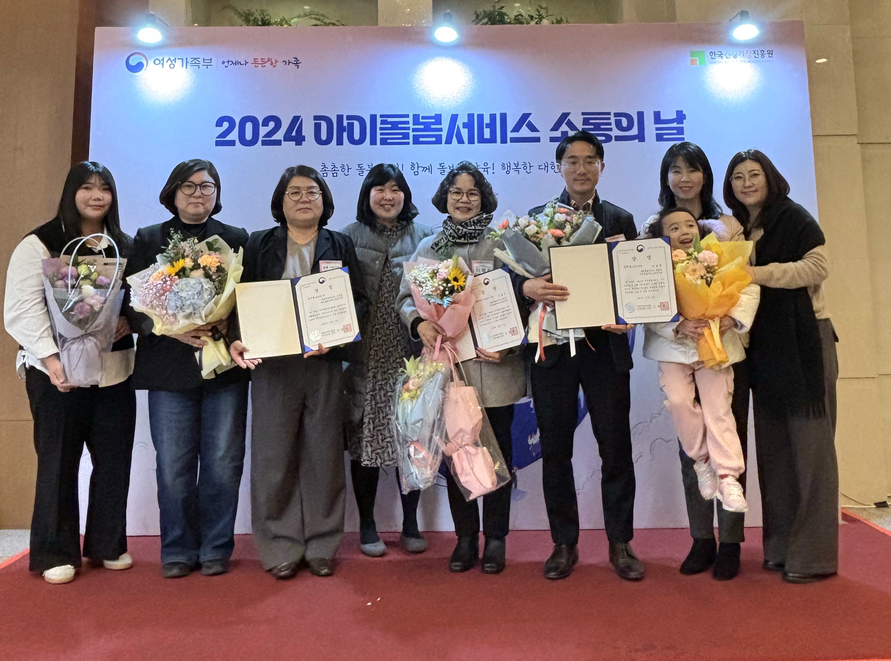 속초시, 영월군, 고성군, 양구군 아이돌봄서비스제공기관, 이용자, 아이돌보미 수상 소식 강원특별자치도 아이돌봄광역지원센터는 지난 12월 5일 여성가족부와 한국건강가정진흥원이 주최한 2024년 아이돌봄서비스 소통의 날 행사에 참석하여 전국에서 뛰어난 성과를 거둔 아이돌봄서비스 기관과 아이돌봄서비스 수기 공모 수...