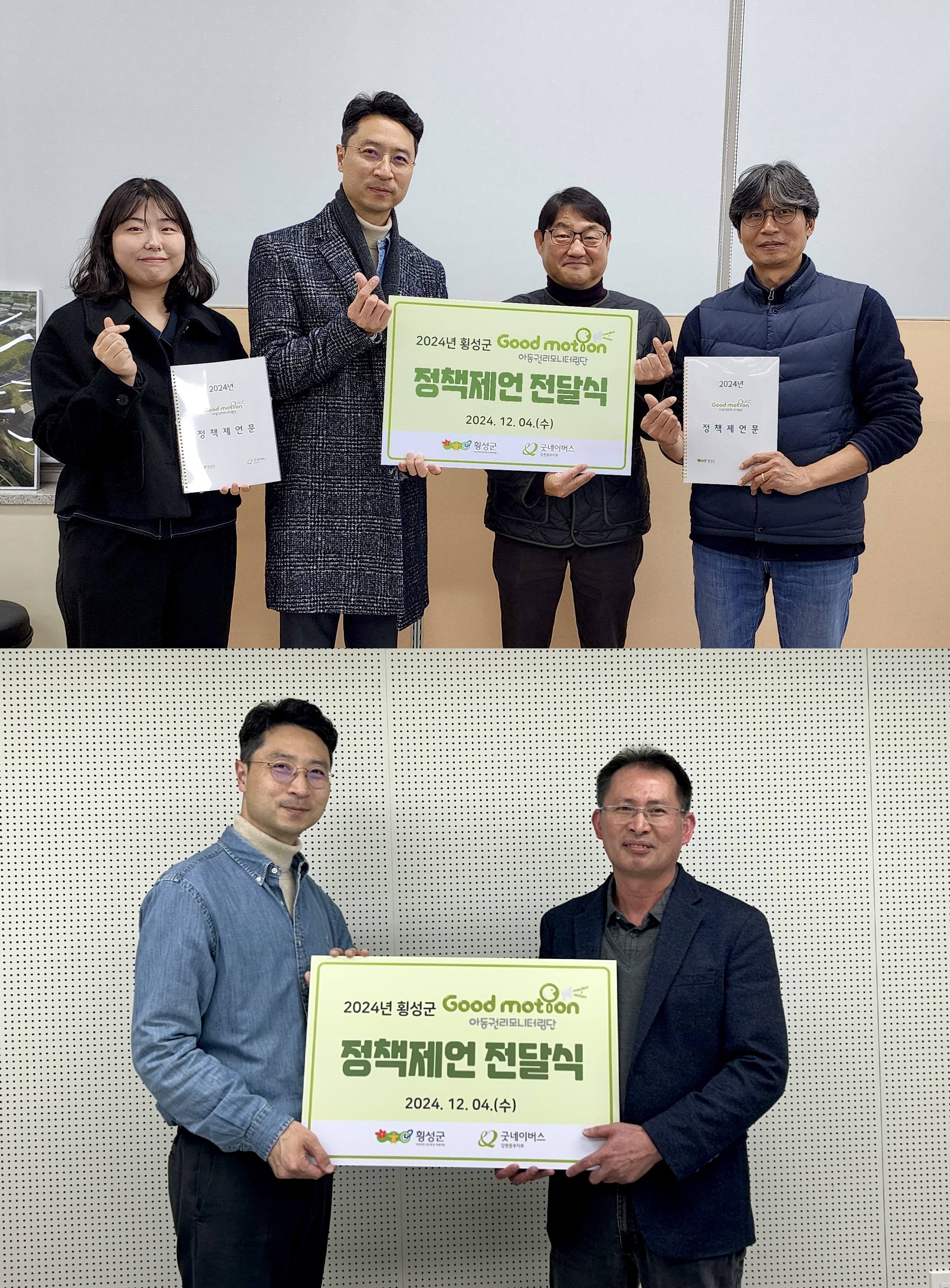 굿네이버스 강원중부지부(지부장 이상욱)는 아동권리모니터링단 굿모션(Good motion) 정책제언 전달식을 진행했다고 12월 6일(금) 밝혔다. 굿네이버스 아동권리모니터링단 굿모션(Good motion) 정책제언 전달식은 굿네이버스 강원중부지부 이상욱 지부장, 횡성군청 김홍석 가족복지과장, 이재근 복지행정팀장, 남재현 아동청...