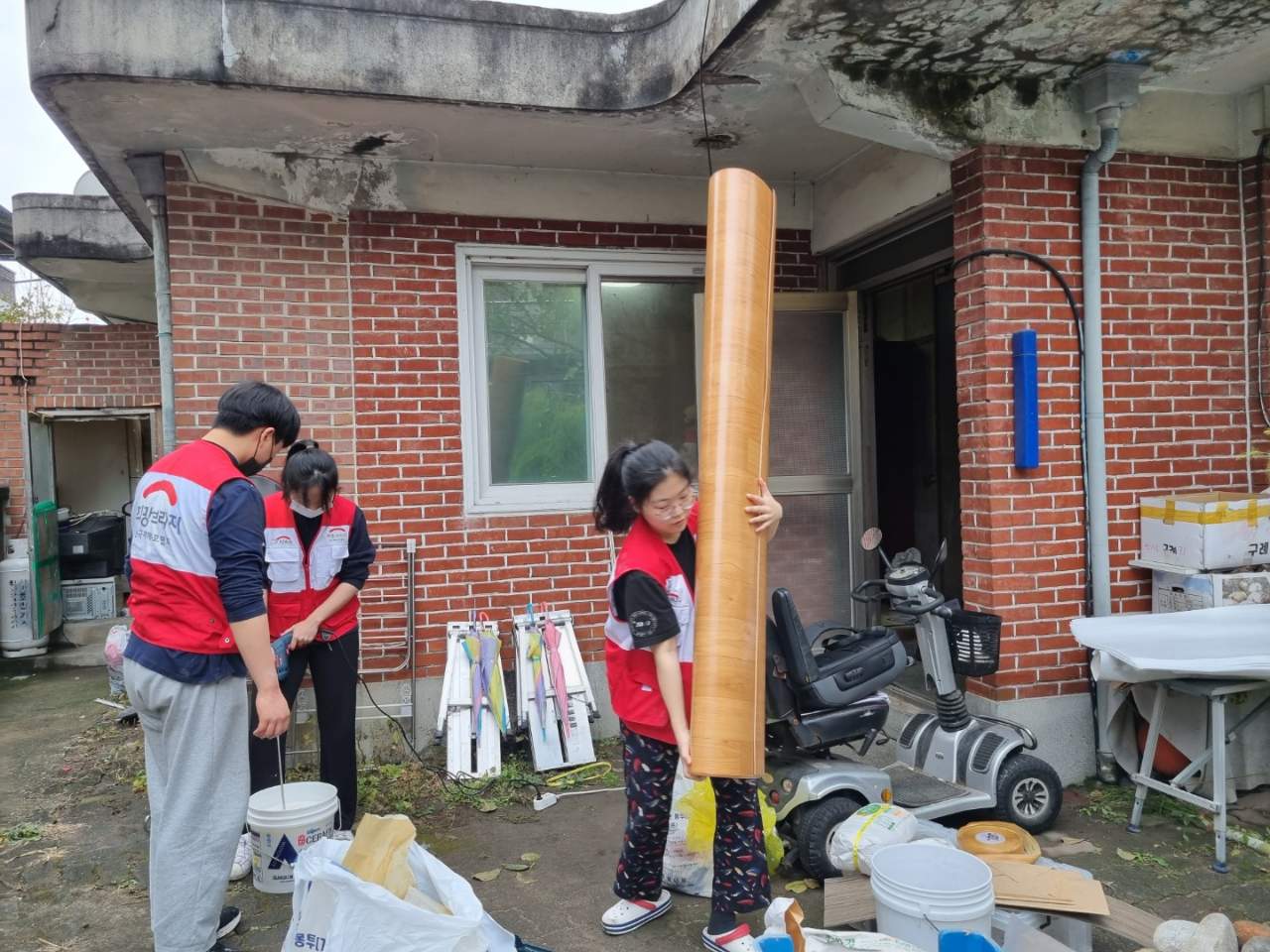 [강원사회복지신문 김도연 기자]=강원대 학생봉사동아리 DJ.KANG(동아리회장 박성희, 경영학과 4, 학생 25명)는 지난 11월 13일 희망브리지 전국재해구호협회의 지원을 받아 교동 저소득층 2가구를 방문해 도배 및 장판교체, 정리수납 등 봉사활동을 펼쳤다.