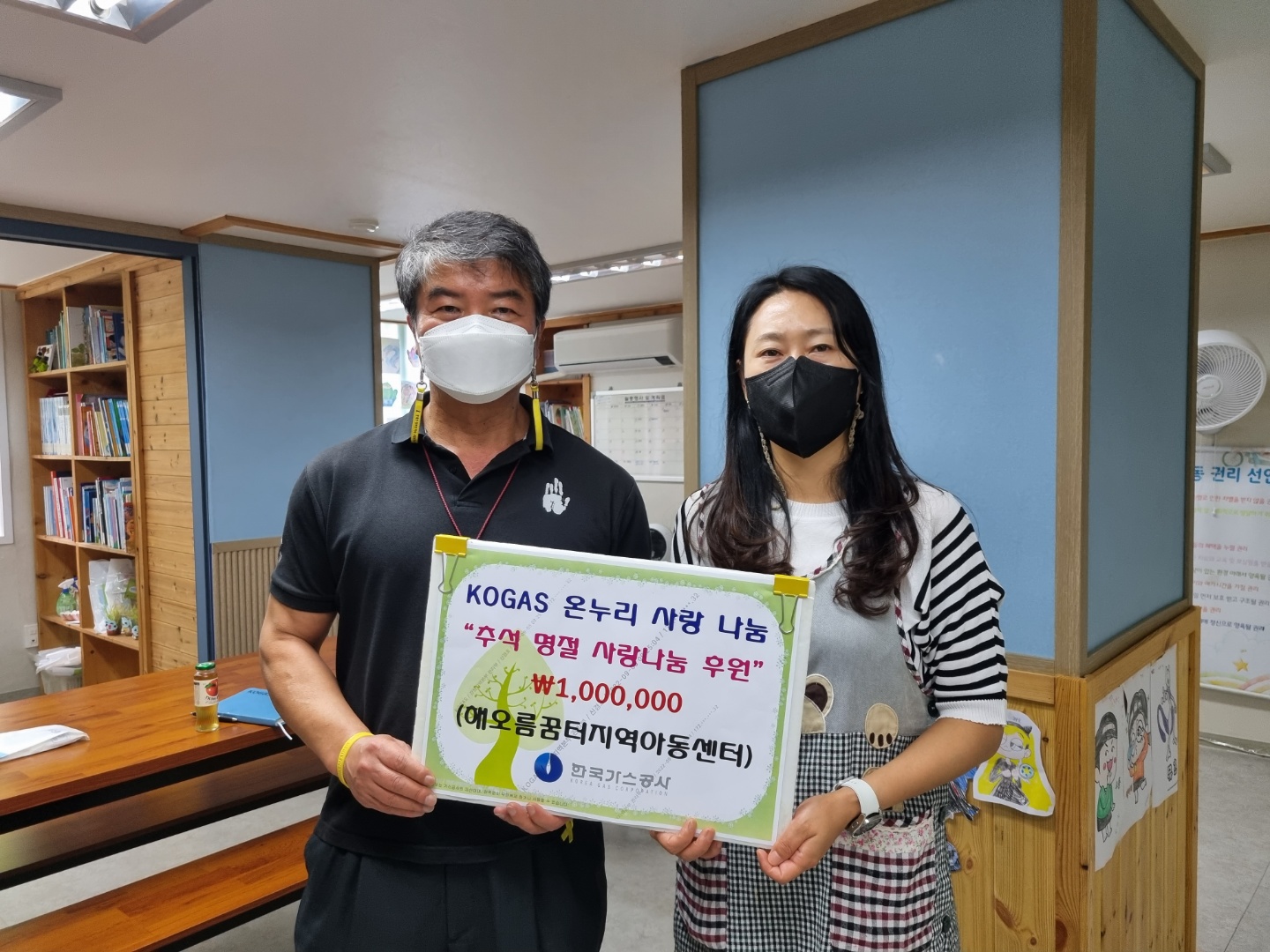 [강원사회복지신문 서은진 기자]=한국가스공사 강원지역본부에서 지난 9월 6일(화) 추석 명절을 맞이하여 원주 해오름꿈터지역아동센터에 온누리상품권 100만원을 후원했다.