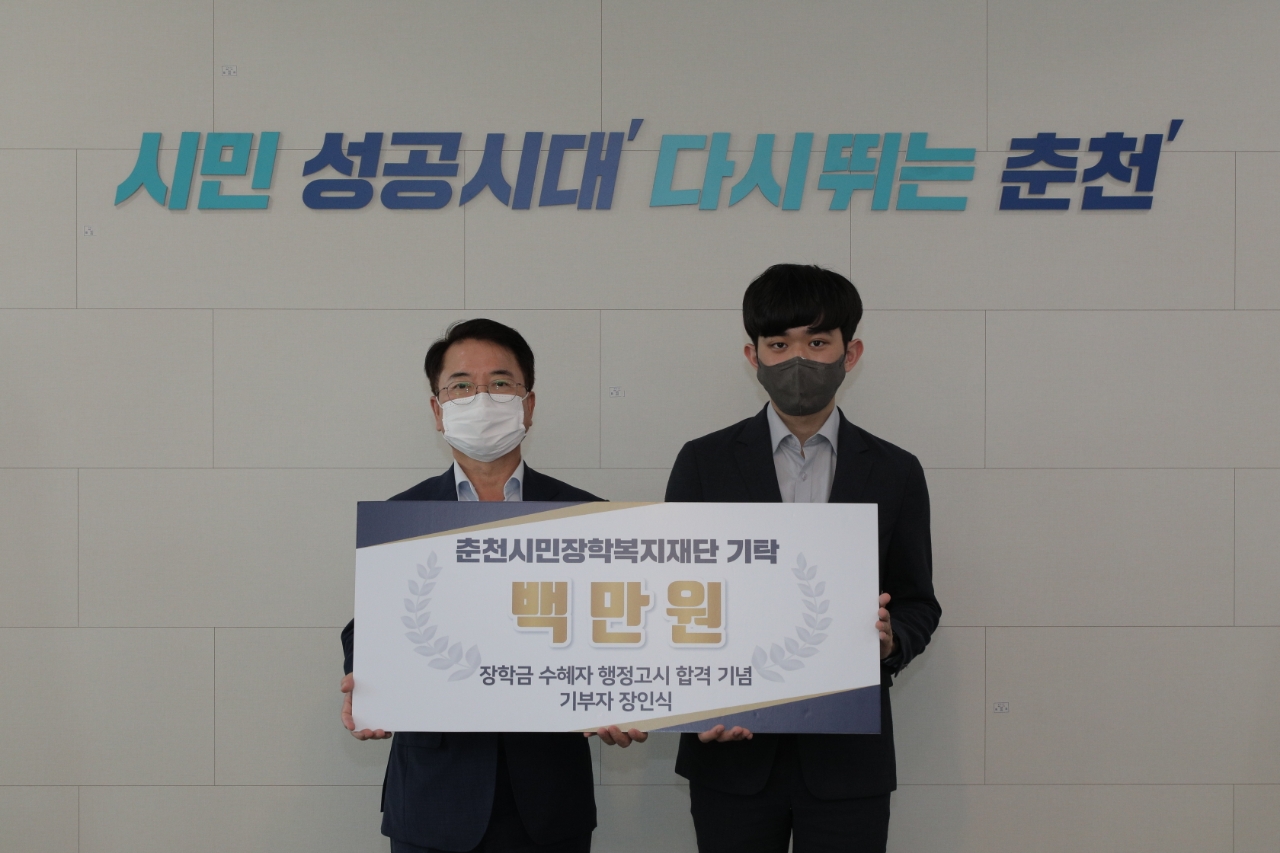 [강원사회복지신문 김도연 기자]=행정고시 재경직 합격자 장인식(사진)씨는 지난 9월 6일 춘천시장 접견실에서 장학금 100만원을 춘천시민장학복지재단에 기탁했다.