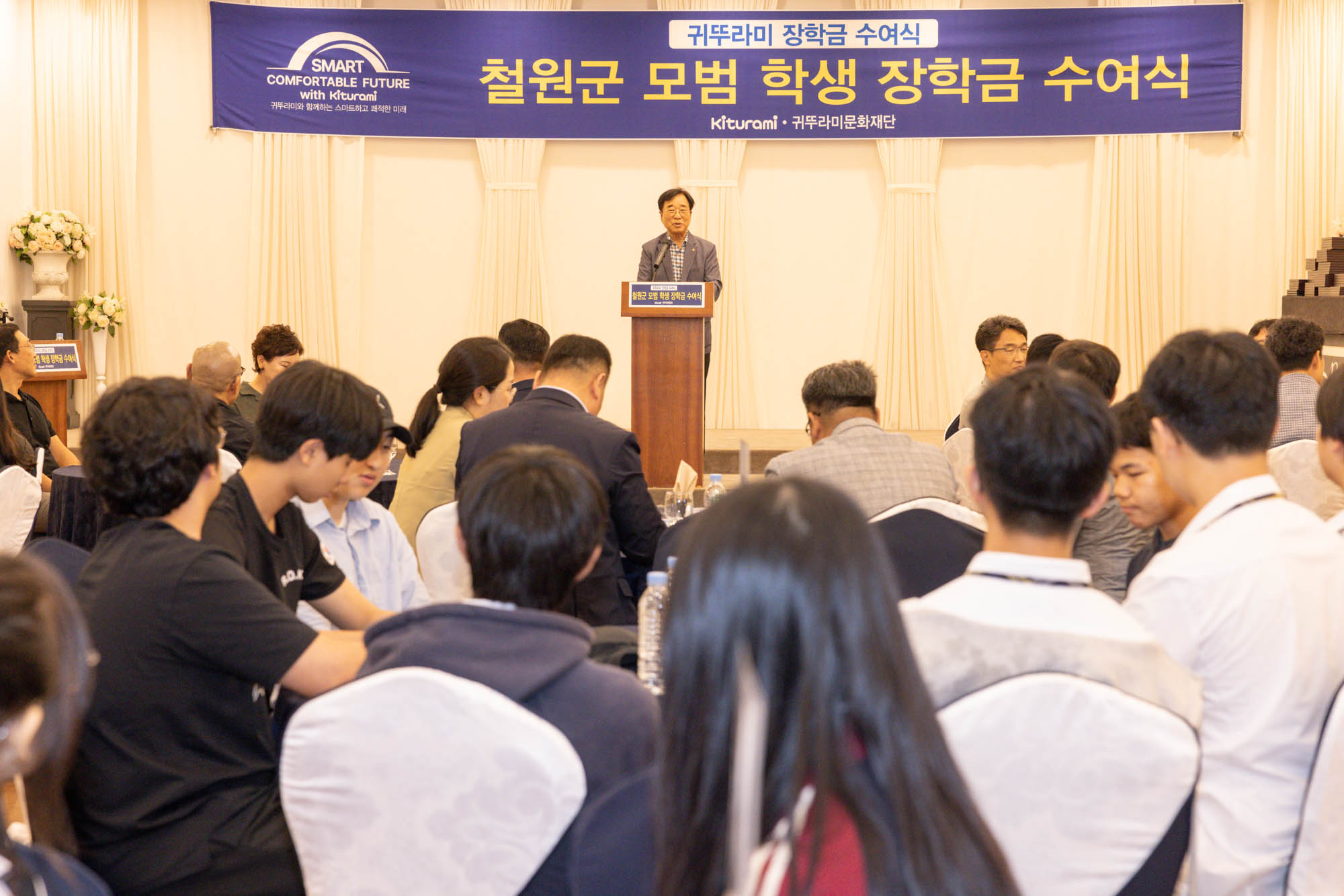 귀뚜라미그룹 장학금 수여식이 지난 7월 17일(수) 오후 철원 한탄리버스파호텔에서 열렸다. 이날 귀뚜라미 그룹 최진민 회장을 비롯해 이현종 철원군수, 한종문 군의장 및 철원군의회 의원, 각급 학교 교장 및 교감 선생님을 비롯한 관내 고등학교 학생 100명이 참석했다. 이번 장학금은 철원군에서 추천한 학력우수, 예체능...