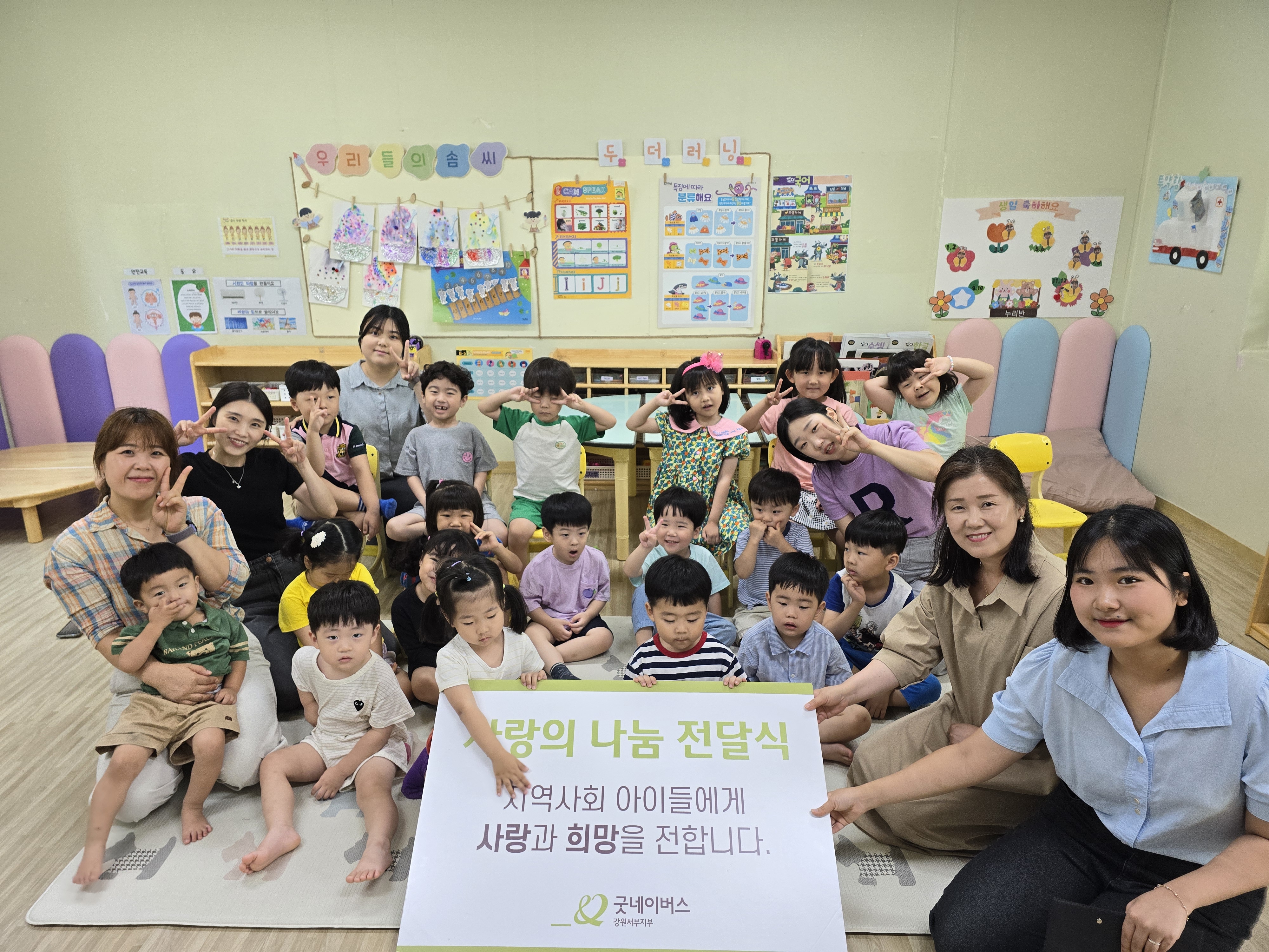 태장어린이집, 원주시 내 학대피해아동 지원을 위한 바자회 수익금 29만 6천원 기부 굿네이버스 강원서부지부, 원주시 태장동 학대피해아동 지원을 위해 사용 예정 굿네이버스 강원서부지부(지부장 박미경)는 태장어린이집(원장 신현정)으로부터 원주시 학대피해아동 지원을 위한 후원금 29만 6천원을 전달받았다고 지난 7월...