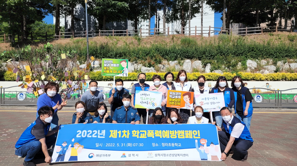 [강원사회복지신문 김종한 기자]=삼척시청소년상담복지센터(센터장 김정희)에서는 지난 5월 31일(화) 오전 7시 30분부터 오전 9시까지 정라초등학교 내에서 학교폭력 인식개선 및 예방을 목적으로 2022년 제1차 학교폭력예방캠페인을 진행했다고 밝혔다. 본 캠페인은 삼척시청소년상담복지센터 전 직원, 1388 청소년 지원단,...