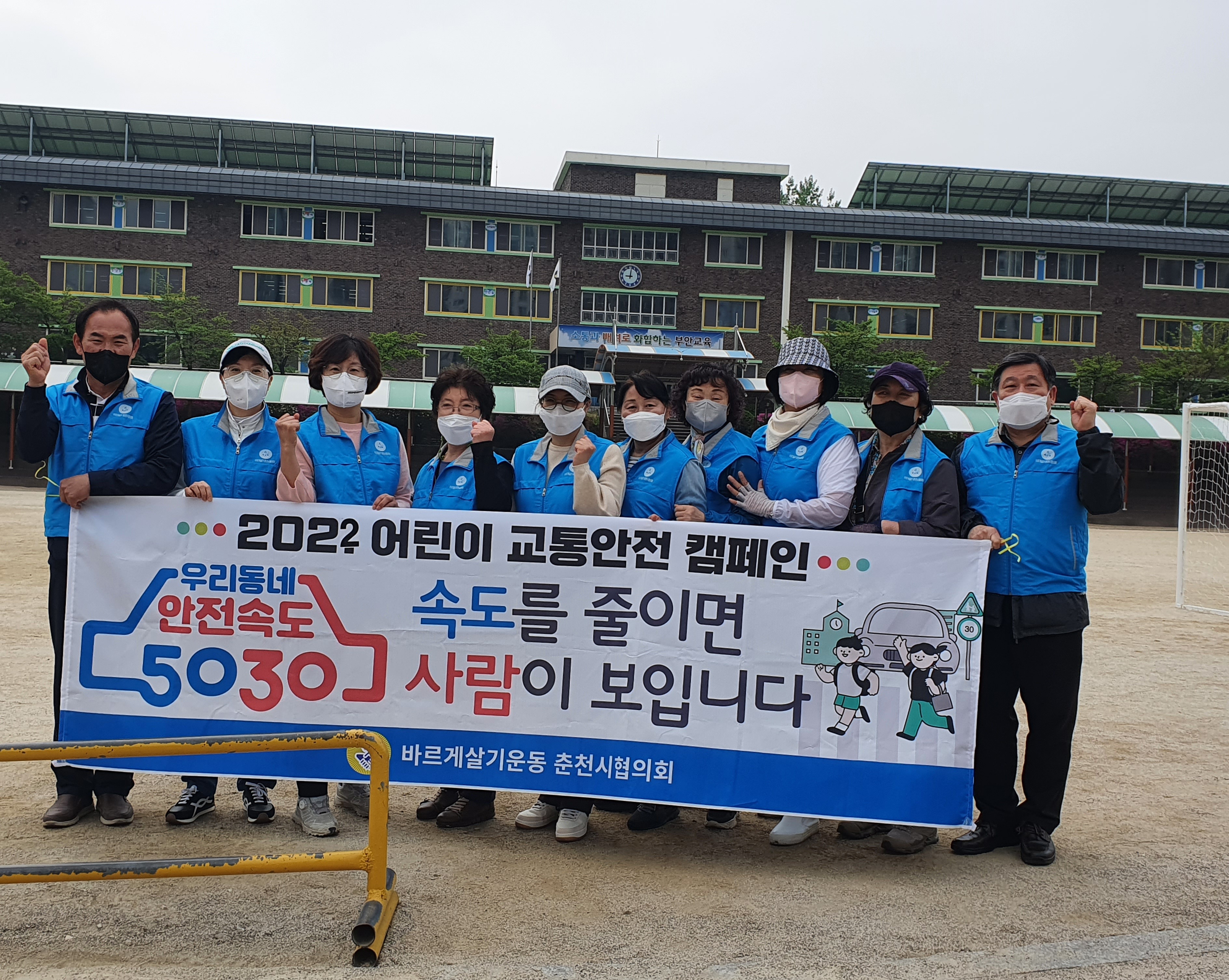 [강원사회복지신문 서은진 기자]=춘천시 후평2동 바르게살기위원회(위원장:최경숙)는 지난 4월 25일 부안초등학교 앞에서 어린이 교통안전을 위한 거리 캠페인을 했다.