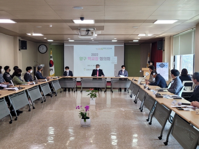 [강원사회복지신문 이정환 기자]=강원도양구교육지원청(교육장 이재학)은 지난 4월 20일(수) 관내 초중고 학교장을 대상으로 '2022 양구교육지원청 학교장 협의회'를 개최했다. 협의회에서는 2022 강원도양구교육지원청 주요업무 방향 및 협조사항을 안내하고, 코로나19 대응 교육회복을 위한 기관별 역할 및 사례 공유 등 학...