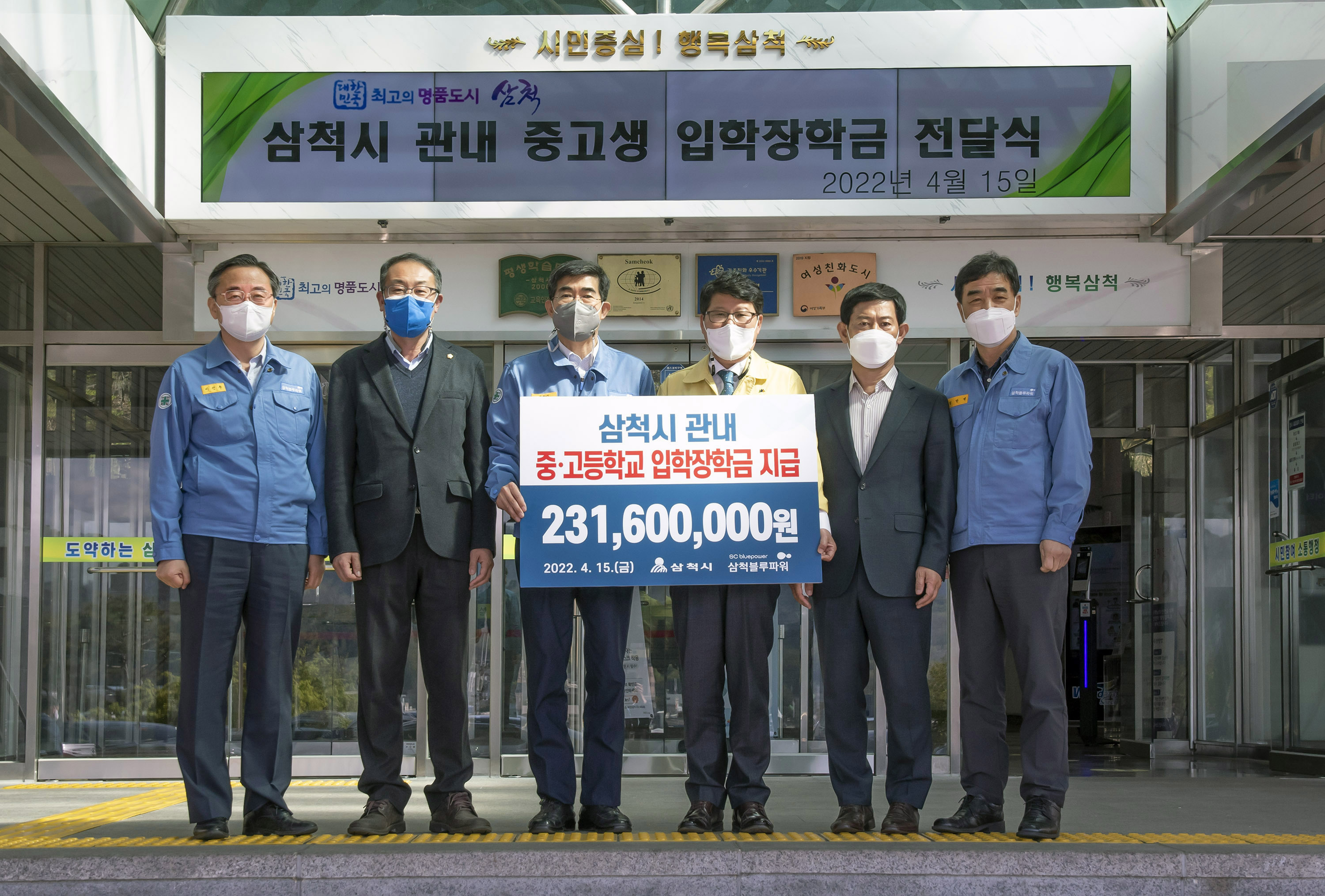 [강원사회복지신문 이정환 기자]=삼척블루파워(주)(사장 옥인환), 삼척시, 삼척시의회는 지난 4월 15일 삼척시청 앞에서 '발전소주변지역 지원에 관한 법률'에 따라 발전소 반경 5km 이내에 거주하는 중학교·고등학교 신입생 664명에게 입학준비금 전달식을 진행했다. 이날 전달식은 심의지역위원회 위원장 심원섭(삼척 부시...