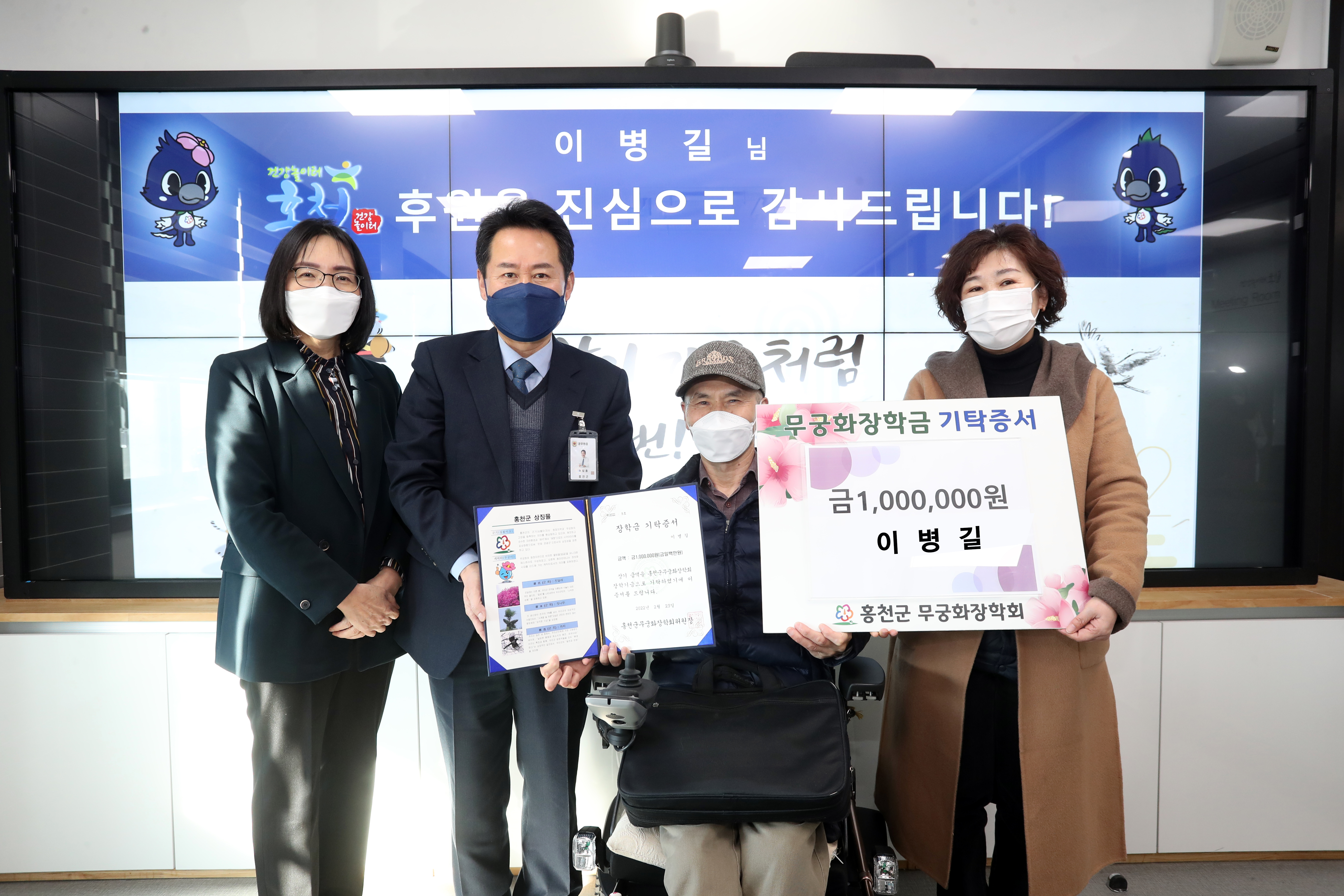 [강원사회복지신문 홍기한 기자]=기부천사 이병길씨는 지난 2월 23일 홍천군청을 방문, 홍천군 인재 육성을 위한 무궁화장학금 100만원을 기탁했다.