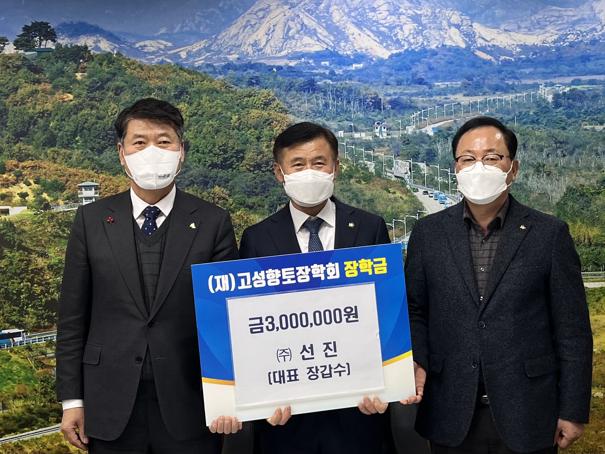 [강원사회복지신문 김종한 기자]=(주)선진(대표 장갑수)는 지난 1월 24일 고성군청을 방문해 고성향토장학회 장학금 300만원 함명준 군수에게 기탁했다.