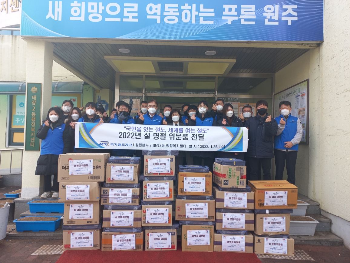 [강원사회복지신문 서은진 기자]=국가철도공단 강원본부(본부장 양인동)는 지난 1월 26일 설 명절을 맞아 태장2동 행정복지센터를 방문해 설 명절 위문품을 전달했다. 햇반, 라면, 김, 죽, 참치, 참기름 등 식품으로 구성된 위문품은 태장2동 청소년공동생활가정 및 다문화가정 22가구에 전달됐다. 양인동 본부장은 "주변의 ...