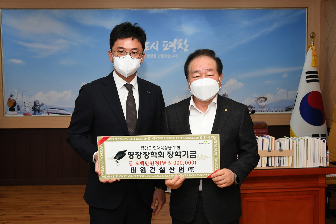 [강원사회복지신문 이정환 기자]=태원건설산업(주)(대표 박재현)은 지난 1월 19일 평창군청을 방문해 평창장학회에 장학금 5백만 원을 기탁하였다. 박재현 대표는 "지역의 인재들이 자신의 역량을 발휘하며 꿈을 이룰 수 있는 발판을 마련하는데 조금이나마 보탬이 되길 바란다."고 전했으며, 이에 평창장학회 관계자는 "장학...