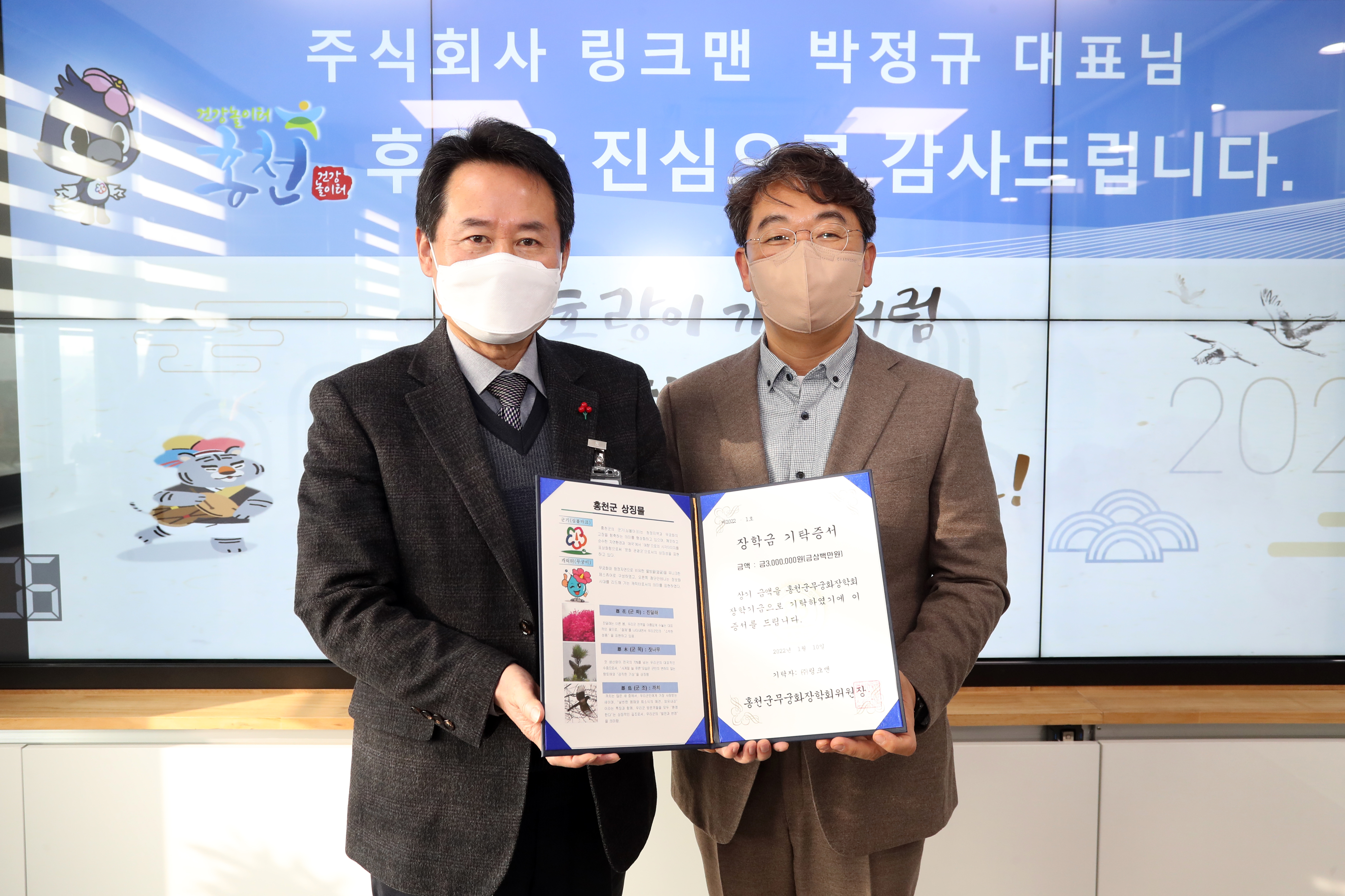 [강원사회복지신문 서은진 기자]=주식회사 링크맨(대표 박정규)은 지난 1월 10일 홍천군청을 방문, 홍천군 인재육성을 위한 무궁화장학금 300만원을 기탁했다.