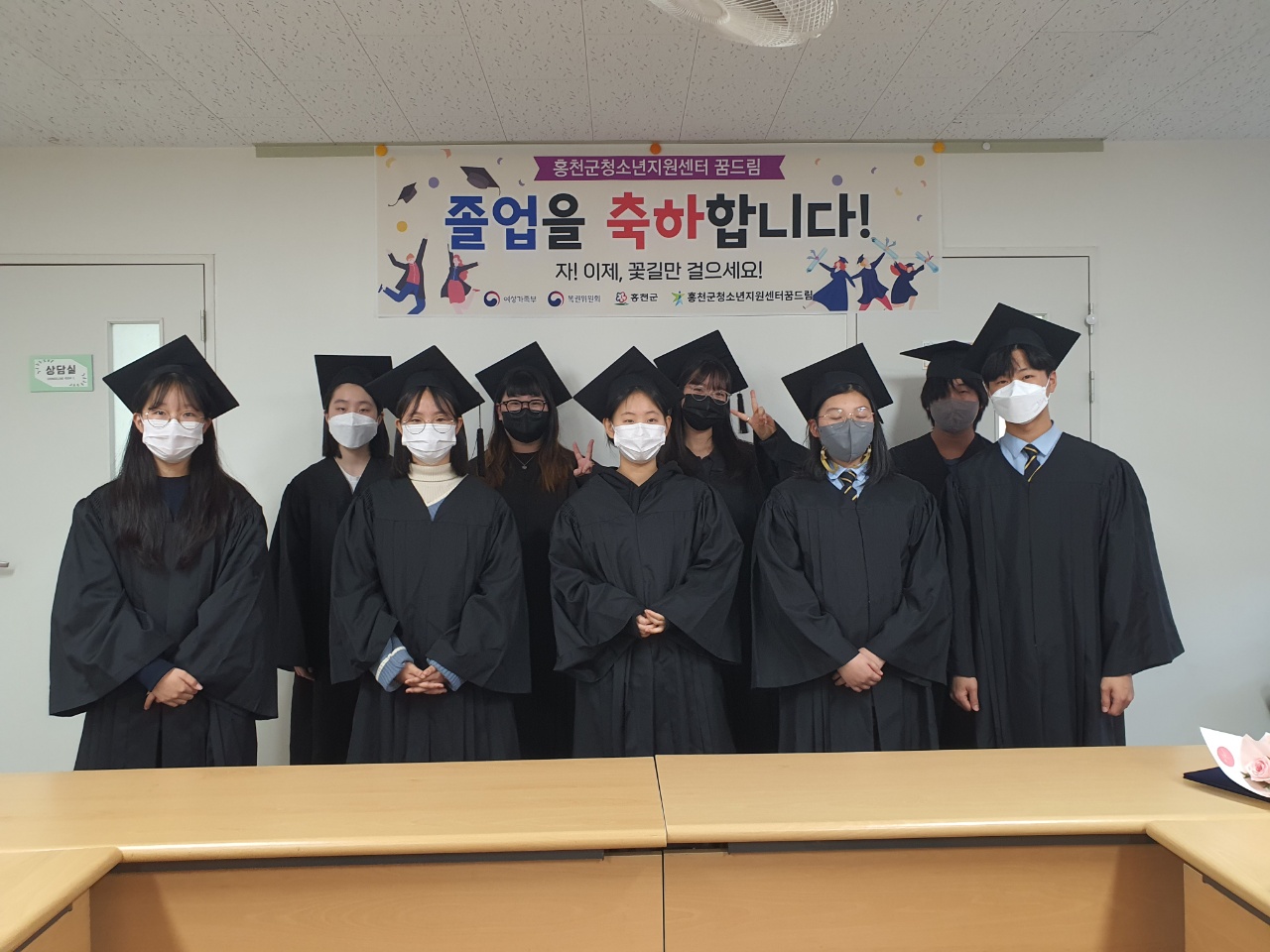 [강원사회복지신문 최재석 기자]=홍천군청소년지원센터 꿈드림(센터장: 허 일)은 지난 12월 23일 홍천군청소년상담복지센터 내에서 졸업식을 개최했다. 졸업식은 올해 검정고시를 통해 학력을 취득한 청소년 11명을 대상으로 졸업장 전달식과 홍천군수의 온라인 축사를 비롯해 참석하지 못한 청소년 관련 단체·시설 관계자,...