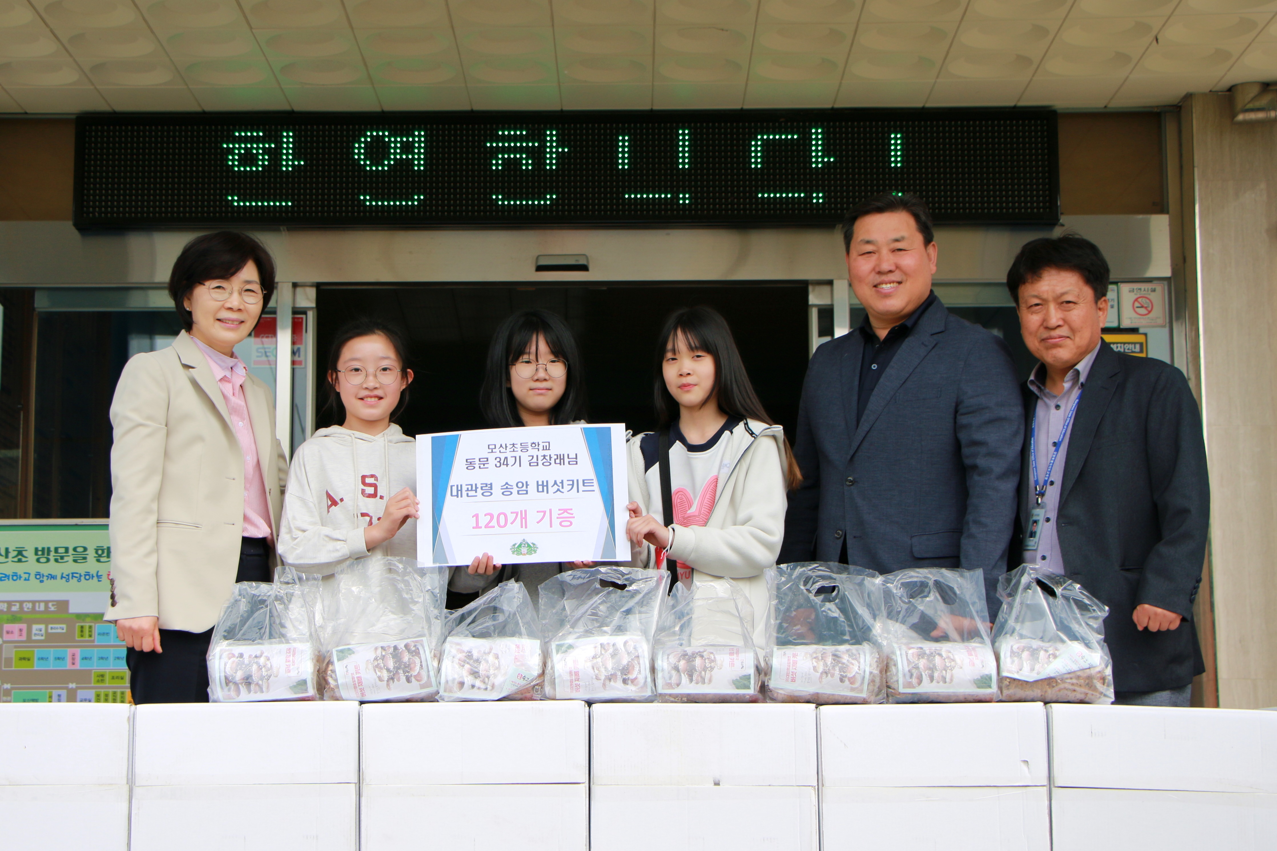 모산초등학교(교장 박춘옥)는 지난 4월 30일(화) 솔송고(주)대관령송암버섯 대표 김창래(모산초 34기)로부터 버섯 재배 꾸러미 120점을 기증받았다. 이날 기증받은 친환경 버섯 재배 꾸러미 120점은 모산초등학교와 병설유치원 학생 모두에게 전달되었다. 해마다 이어지는 모산초 선배의 버섯 재배 꾸러미 선물은 후배들에게...