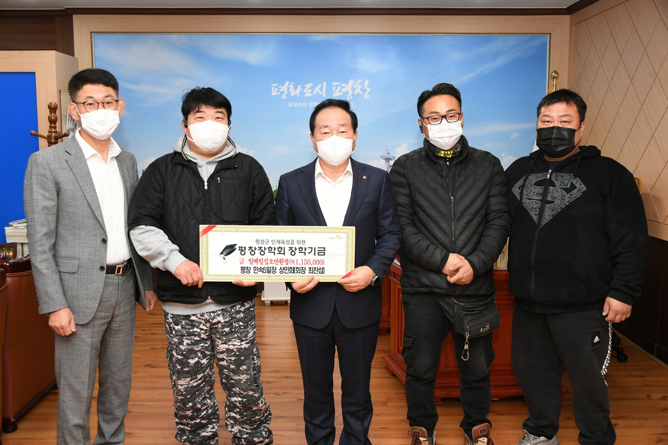 [강원사회복지신문 이정환 기자]=평창 민속5일장 상인회(회장 최찬섭)는 지난 11월 30일 평창군수실에서 (재)평창장학회에 장학기금 115만 원을 기탁했다.
