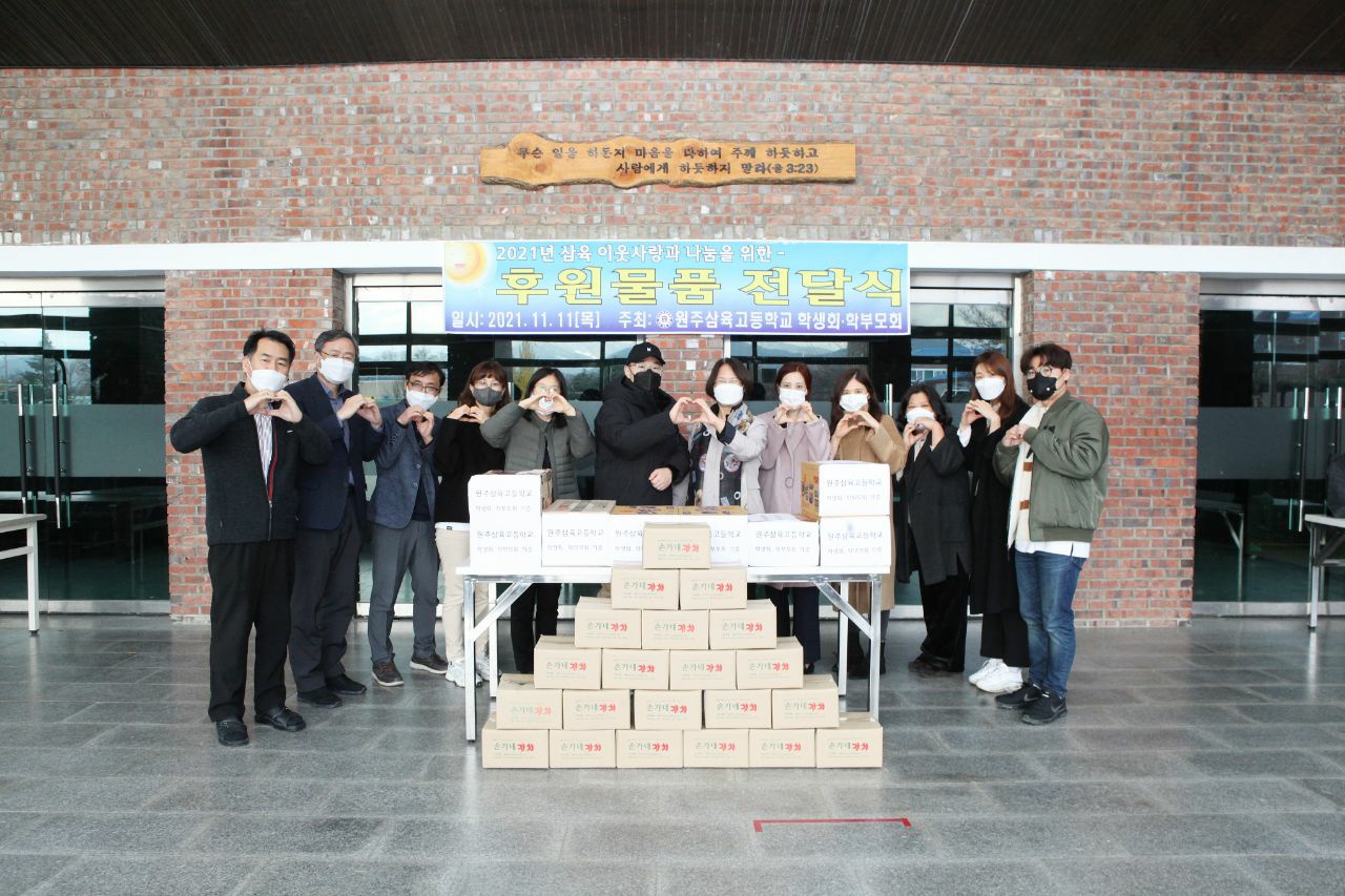[강원사회복지신문 유경수 기자]=2021년 원주삼육중고(교장 이경희) 학생·학부모와 함께하는 후원전달식이 있었다. 개구리 밥차를 이용하는 학교 밖 아이들에게 마음이 담긴 편지와 선물꾸러미 전달과 추운 겨울 필수 음식인 김장김치 전달식이 있었다. 김장김치는 밥상공동체종합사회복지관(관장 허기복) 노인맞춤돌봄서비...