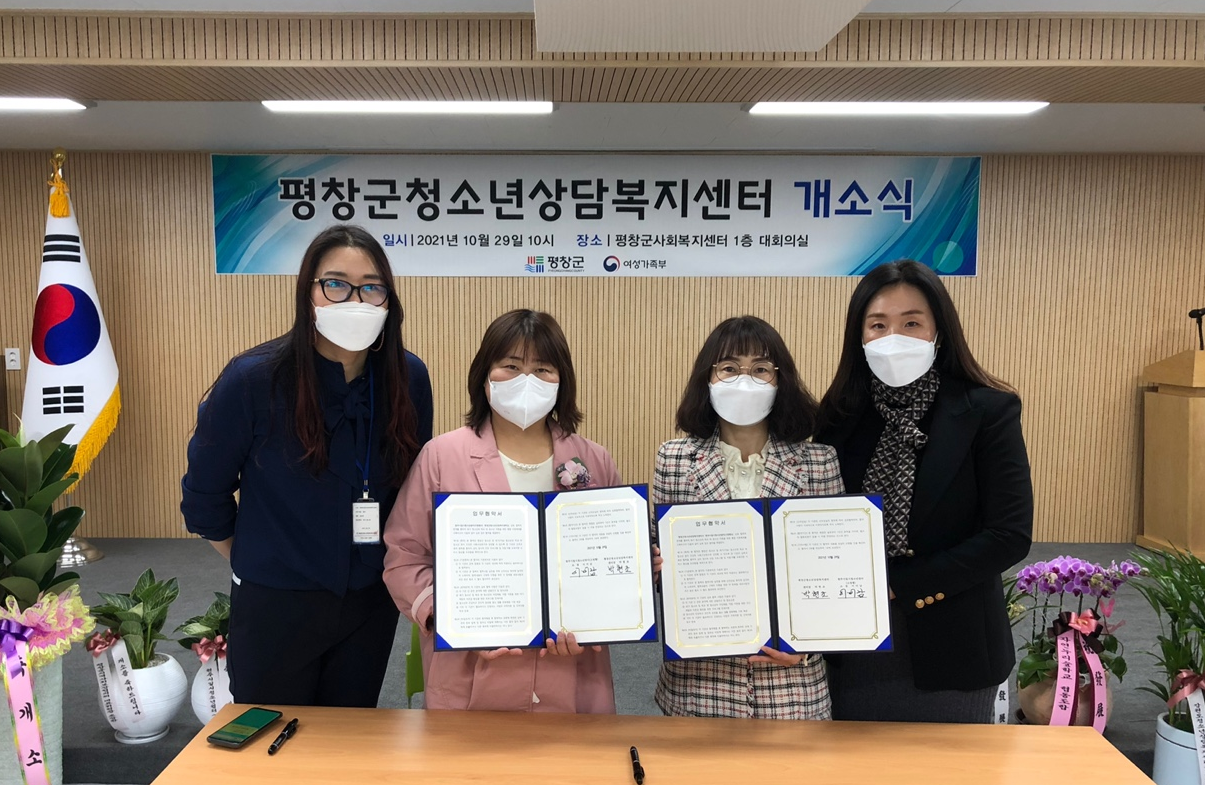 [강원사회복지신문 홍기한 기자]=원주시일시청소년쉼터(고정형)(소장 이미남)는 지난 10월 29일 평창군 청소년상담복지센터 개소식에 참석하여, 가정밖청소년 및 위기청소년들을 위한 업무협약을 체결했다. 원주시일시청소년쉼터(고정형) 이미남 소장과 평창군청소년상담복지센터는 청소년 및 위기청소년과 학교 밖 청소년 등...