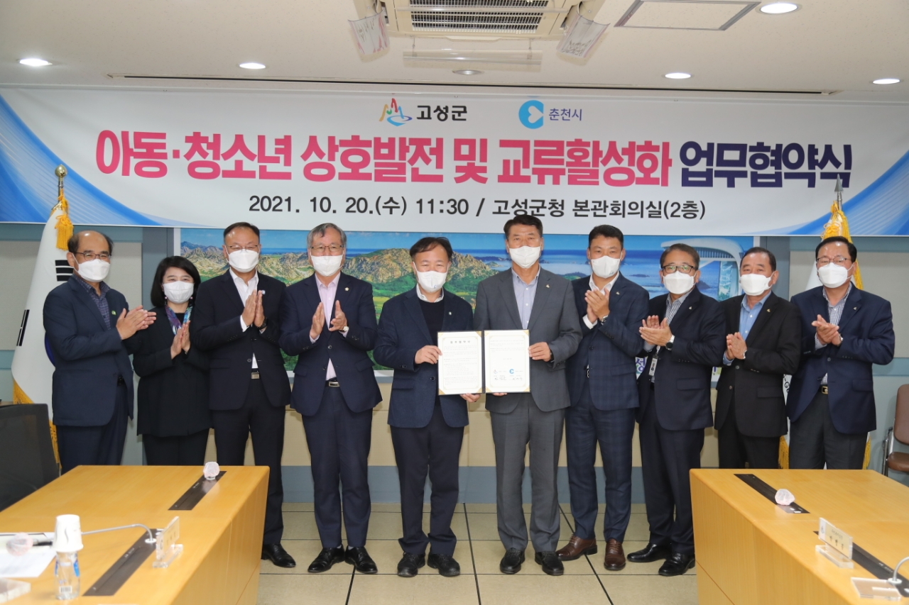 [강원사회복지신문 유경수 기자]=춘천시정부와 강원 고성군은 지난 10월 20일 고성군청 본관 회의실에서 아동·청소년 상호발전 및 교류활성화 업무협약식을 개최했다.