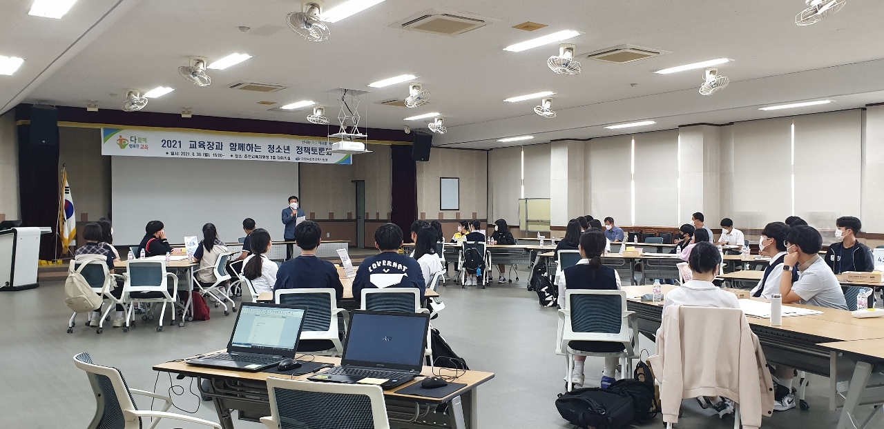 [강원사회복지신문 유경수 기자]=청소년인 우리가 제안하고 우리가 만들어가는 춘천교육 정책 토론회 강원도춘천교육지원청(교육장 박근덕)은 지난 8월 30일(월) 오후 3시부터 5시까지 3층 대회의실에서 '2021 교육장과 함께하는 청소년 정책 토론회'를 실시했다. 이번 정책 토론회에는 관내 중·고등학교 학생자치회 임원 중...