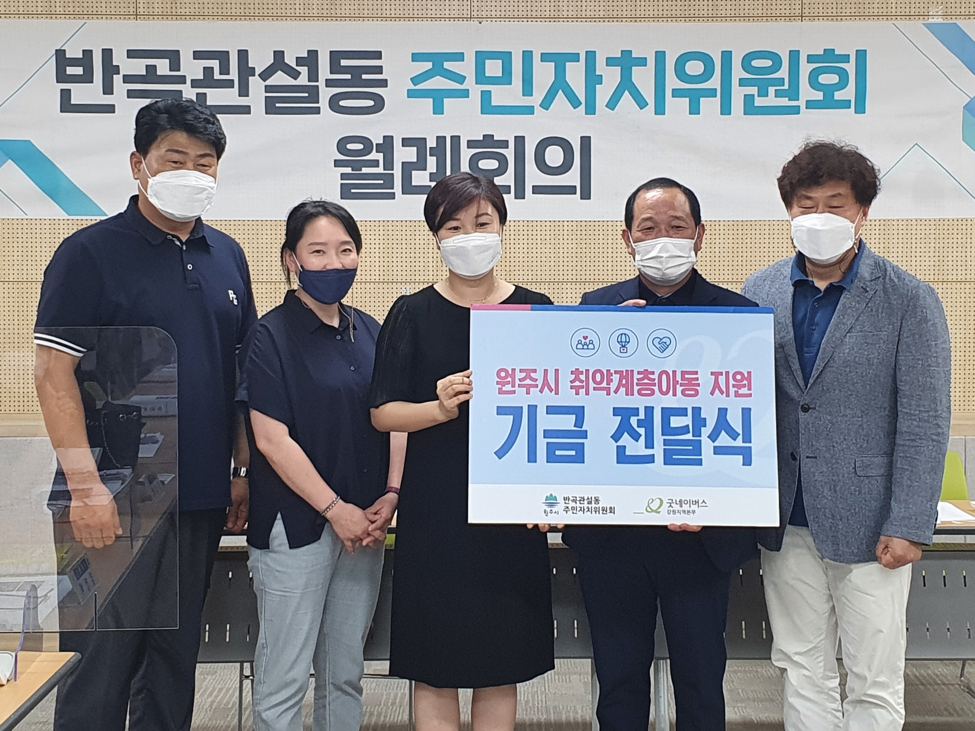 굿네이버스 강원지역본부(본부장 박미경)는 원주시 반곡관설동 주민자치위원회(위원장 원민영)을 통해 원주시 관내의 취약계층 아동기금 100만원을 전달 받았다고 밝혔다. 이 기금은 원주지역내 경제적 어려움으로 생리대 살 돈이 부담되어 하루에 1개의 생리대만으로 사용하거나 정부의 여성용품 바우처가 지원되지만 사각지...