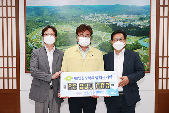 [강원사회복지신문 홍기한 기자]=(주)에코윈드(대표 조우진)는 지난 6월 7일 영월지역 인재육성을 위해 장학금으로 쓰이길 바란다며 2천만원을 재단법인 영월 장학회(이사장 최명서)에 기탁하였다.