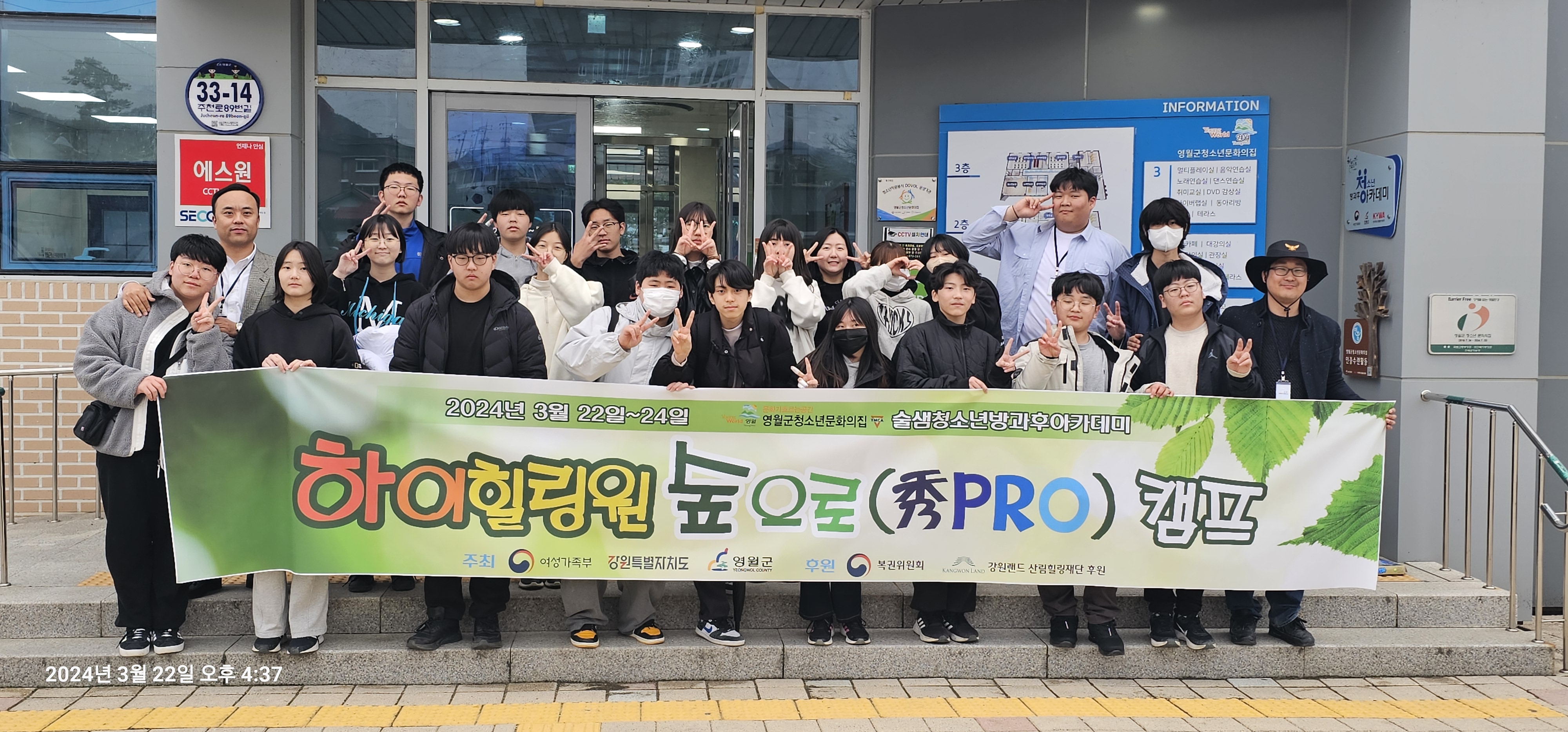 영월군청소년문화의집 ‘술샘’ 청소년방과후아카데미는 산림힐링재단 하이힐링원의 후원으로 22일부터 24일까지 2박 3일간 영월군 하이힐링원에서 ‘숲pro캠프’를 진행하였다. 청소년과 지도자 22명이 참석을 하여 첫날에는 오리엔테이션과 협동심을 기르는 디톡스챌린지를 둘째 날에는 자연을 배우는 산림교육과 소나무 숲...