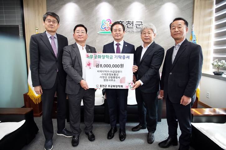 재춘홍고동문회원중 춘천소재의 (주)비에이텍(대표 조세연), (주)금강전기(대표 도재국), (주)태온정보통신(대표 김철수), 이앤강산림행정사 합동사무소(대표 이준희·강효덕)는 지난 3월 14일 홍천군청을 방문하여 홍천군 인재육성을 위한 무궁화장학금 800만원을 기탁했다. (주)비에이텍 대표 조세연(현 바르게살기운동 강...