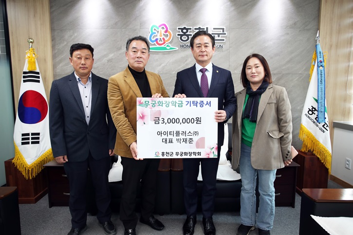 아이티플러스(주)(대표 박재준)는 지난 3월 14일 오전 9시 홍천군청을 방문하여 홍천군 인재육성을 위한 무궁화장학금을 300만원 기탁했다.
