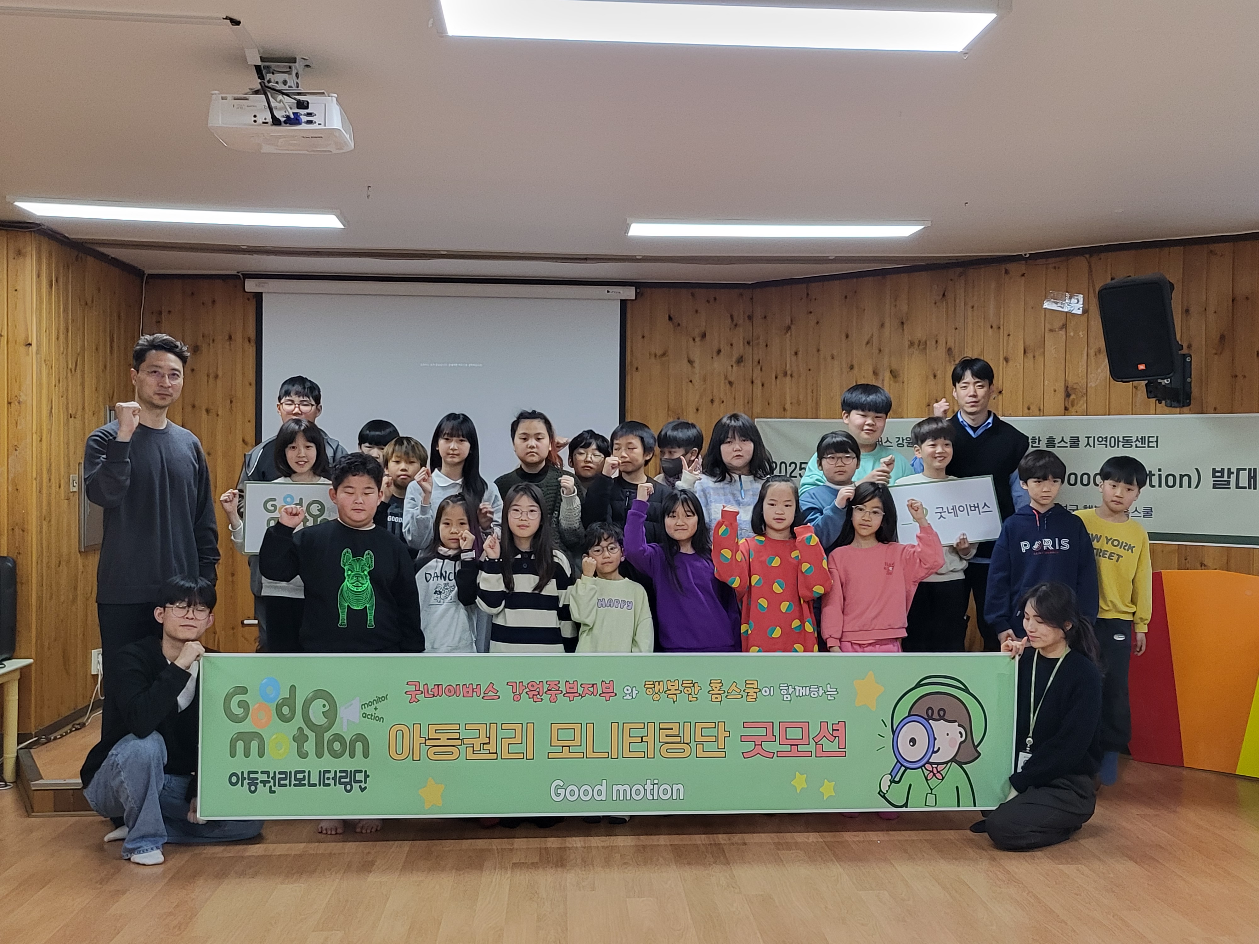 아동권리모니터링단, 지역사회 내 아동권리 침해 실태조사 및 정책 제언 활동 펼칠 예정 굿네이버스 강원중부지부(지부장 이상욱)는 횡성군 행복한홈스쿨 지역아동센터와 함께 굿네이버스 아동권리모니터링단 굿모션(Good motion) 발대식을 진행했다고 2월 25일(화) 밝혔다. 아동권리모니터링단 굿모션(Good motion, 이하 아...