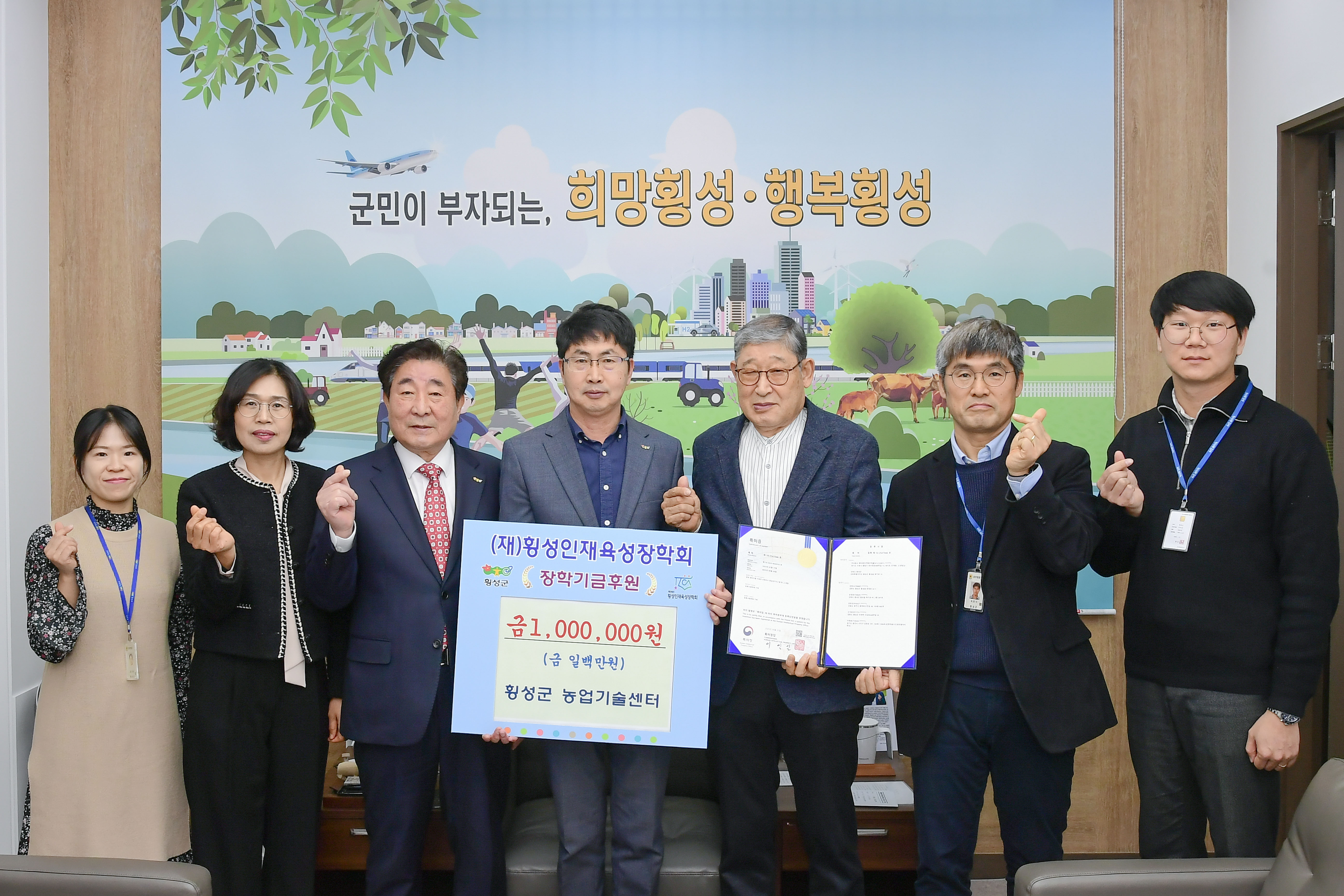 횡성군농업기술센터(소장 임종완)는 지난 2월 15일 공무원 직무발명의 성과로 받은 보상금 100만 원을 횡성인재육성장학회에 전달했다.