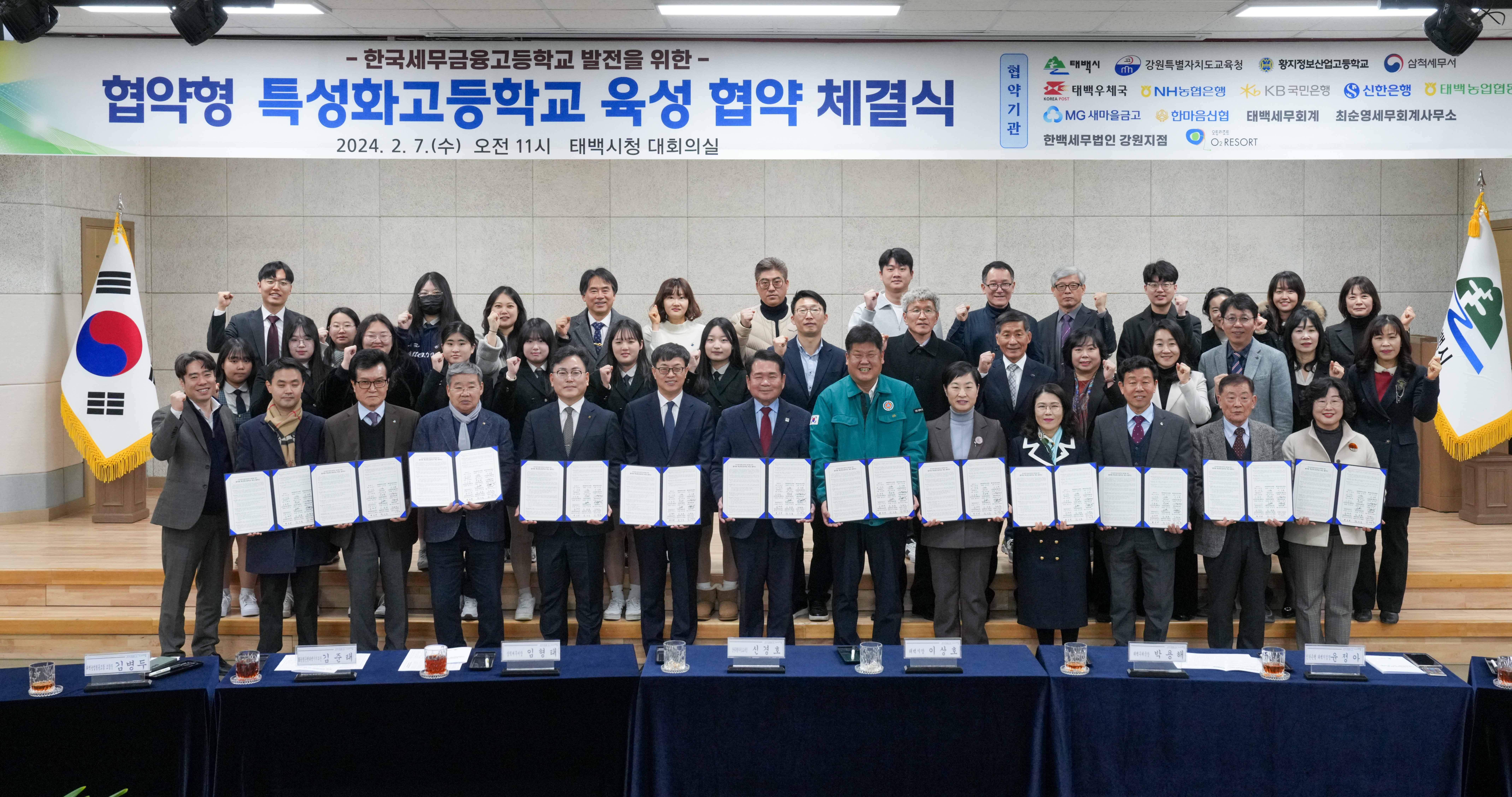 관공서 3곳, 금융기관 7곳, 세무회계법인 3곳, 기업체 2곳 대규모 컨소시엄 구성 도내 첫 번째 협약형 특성화고등학교 추진 모범 사례 한국세무금융고 신설을 위한 제반 사항 지원 및 졸업생의 취업·정주 기반 조성 강원특별자치도교육청(교육감 신경호)은 지난 2월 7일(수) 11시, 태백시와 강원특별자치도형 마이스터고로 ...