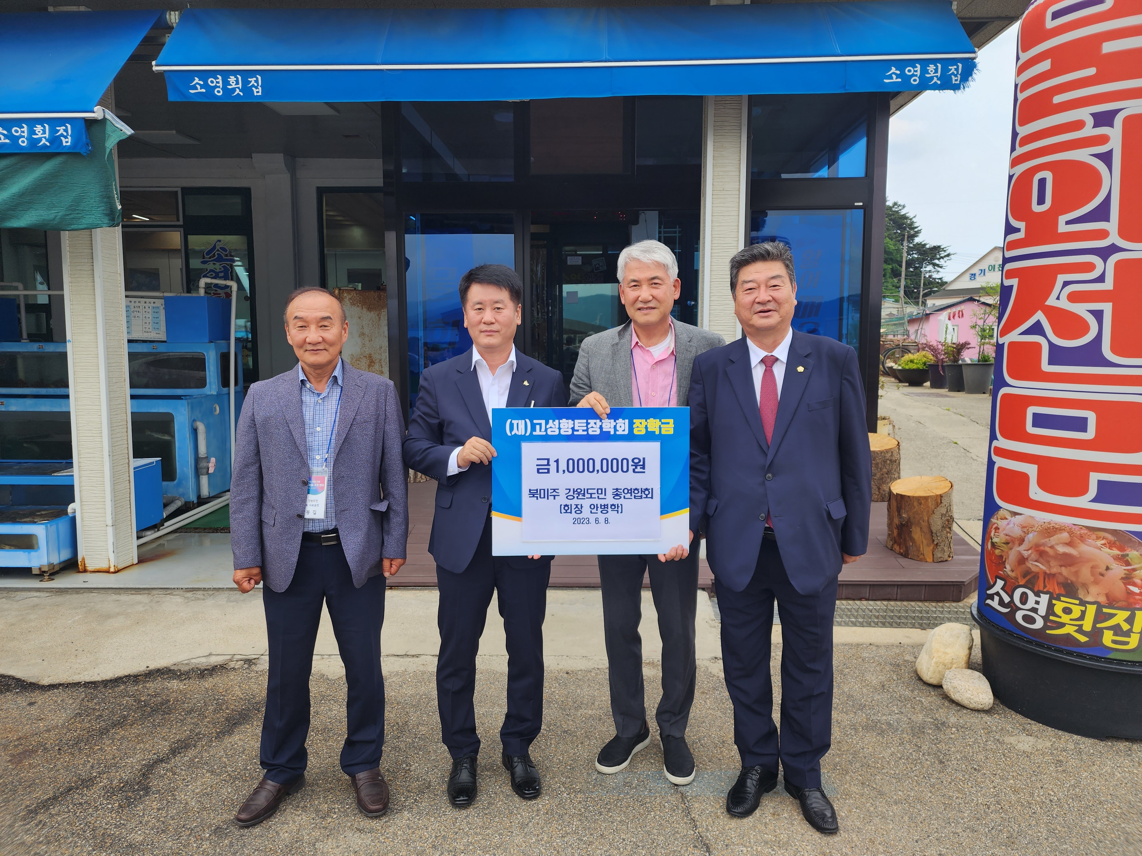 [강원사회복지신문 이정환 기자]=북미주 강원도민 연합회(회장 안병학)는 지난 6월 8일(목) 지역 향토 인재 육성 장학금으로 1백만 원을 기탁하였다.