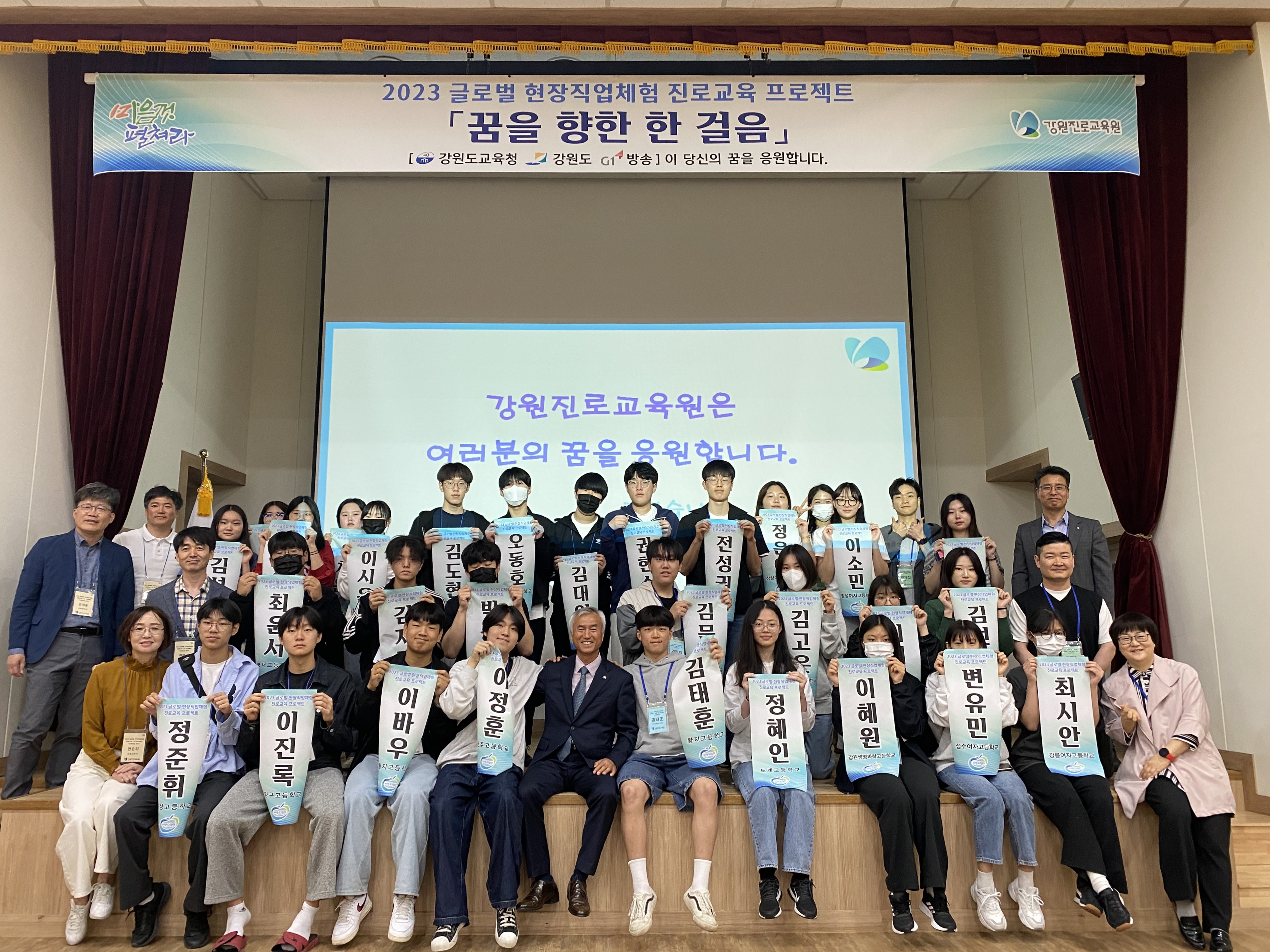 [강원사회복지신문 홍기한 기자]=도내 고교생 32명, 두 차례 국내 캠프 후 8월에 미국 진로체험 참가 강원진로교육원(원장 이병철)은 지난 5월 11일(목), 1차 국내 캠프 입소식으로 '2023 글로벌진로체험 프로젝트 꿈을 향한 한 걸음' 과정을 시작했다. 글로벌 진로체험 프로젝트는 강원도 폐광지역개발기금의 지원을 받아 진...