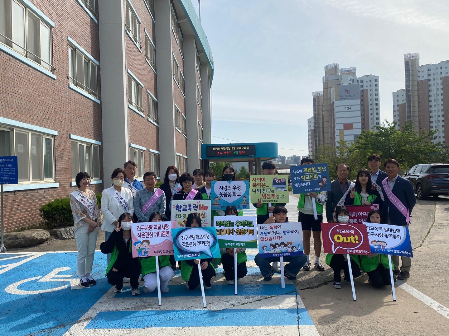 [강원사회복지신문 김종한 기자]=평화로운 안식처, 폭력 없는 학교 우리가 함께 만들어요 동해교육지원청(교육장 박광서)은 지난 5월 10일(수) 광희중·고등학교 정문에서 학교폭력 근절을 위한 캠페인을 실시하였다. 이 행사는 동해교육지원청 Wee센터가 주관하였으며 △동해시 청소년상담복지센터 △동해시 가정폭력·성폭...