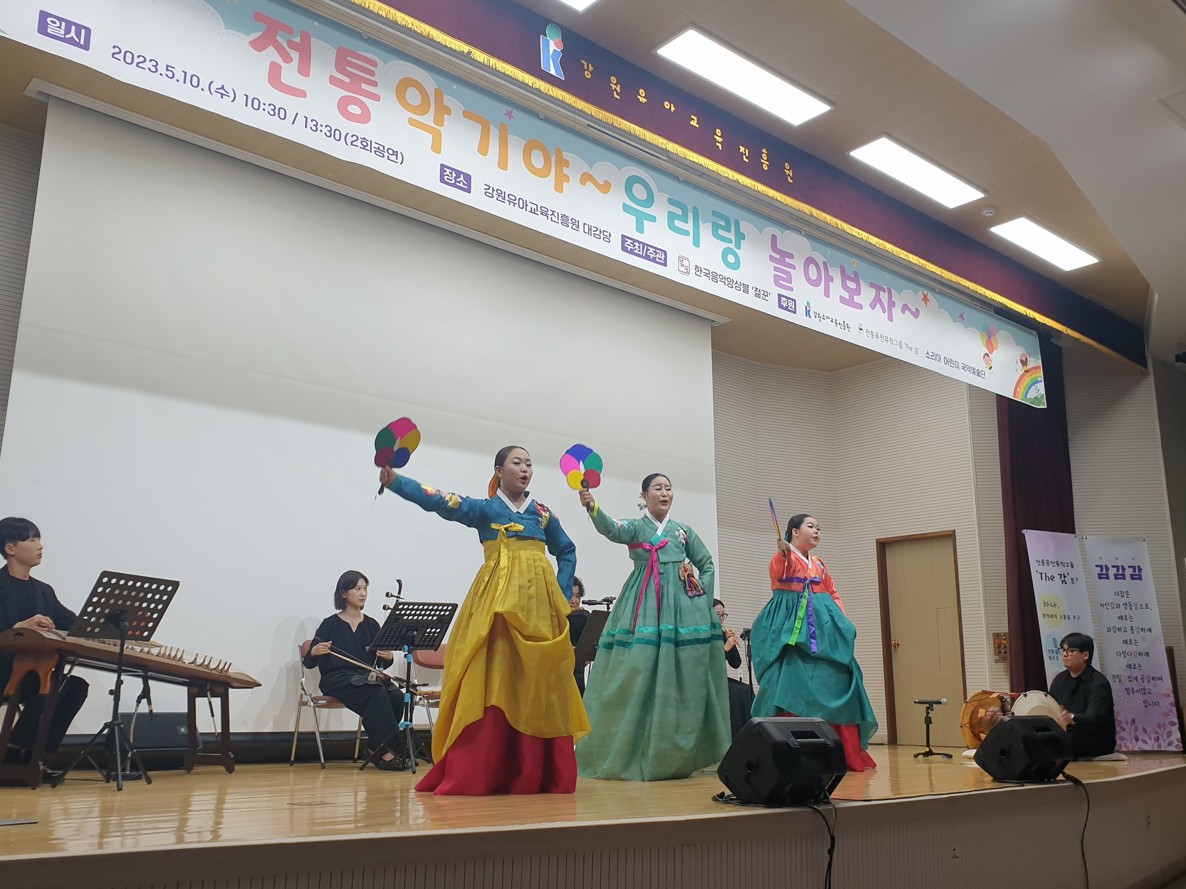 [강원사회복지신문 김도연 기자]=강원유아교육진흥원(원장 이현숙)은 지난 5월 10일(수) 오전, 오후 두 차례 본원 대강당에서 춘천지역 공·사립 유치원 및 어린이집 유아를 대상으로 전통악기를 체험할 수 있는 '전통악기야 우리랑 놀자' 공연을 개최했다. 이번 공연은 전통음악을 전공한 전문연주자들이 유아들이 쉽게 이해...