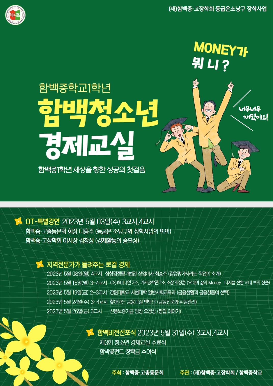 [강원사회복지신문 이정환 기자]=정선 함백중·고등학교(교장 고진식)와 함백중·고 총동문회(동문회장 나흥주)는 2021년도부터 2년 동안 운영해 온 새로운 형태의 장학제도, '등굽은소낭구' 사업을 2023년도에도 운영한다. 지방소멸 예방과 학교 교육 중심 지역인재 양성을 위한 '등굽은소낭구' 사업은 △A유형 '청소년 경제...